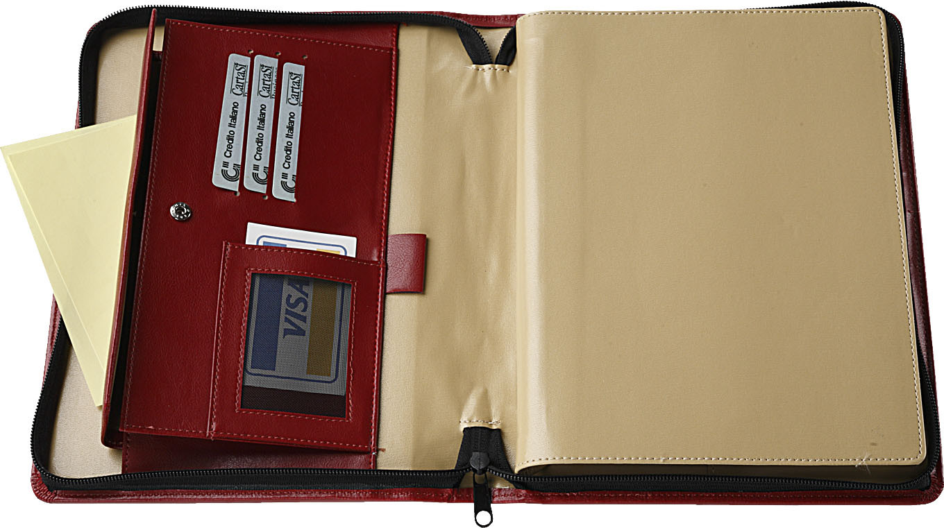 Agenda borsello in similpelle. 324 pag. Tasca interna porta documenti chiusa con bottone. Varie tasche porta card, vano porta penne. Interno mobile giornaliero (17x24). Stampa 2 colori. Multilingue. Sabato e domenica abbinati, rubrica telefonica. Colori: nero, blu. bordeaux. Confezione in astuccio. Dimensioni cm. 18x25 Imballo: 30xcolore