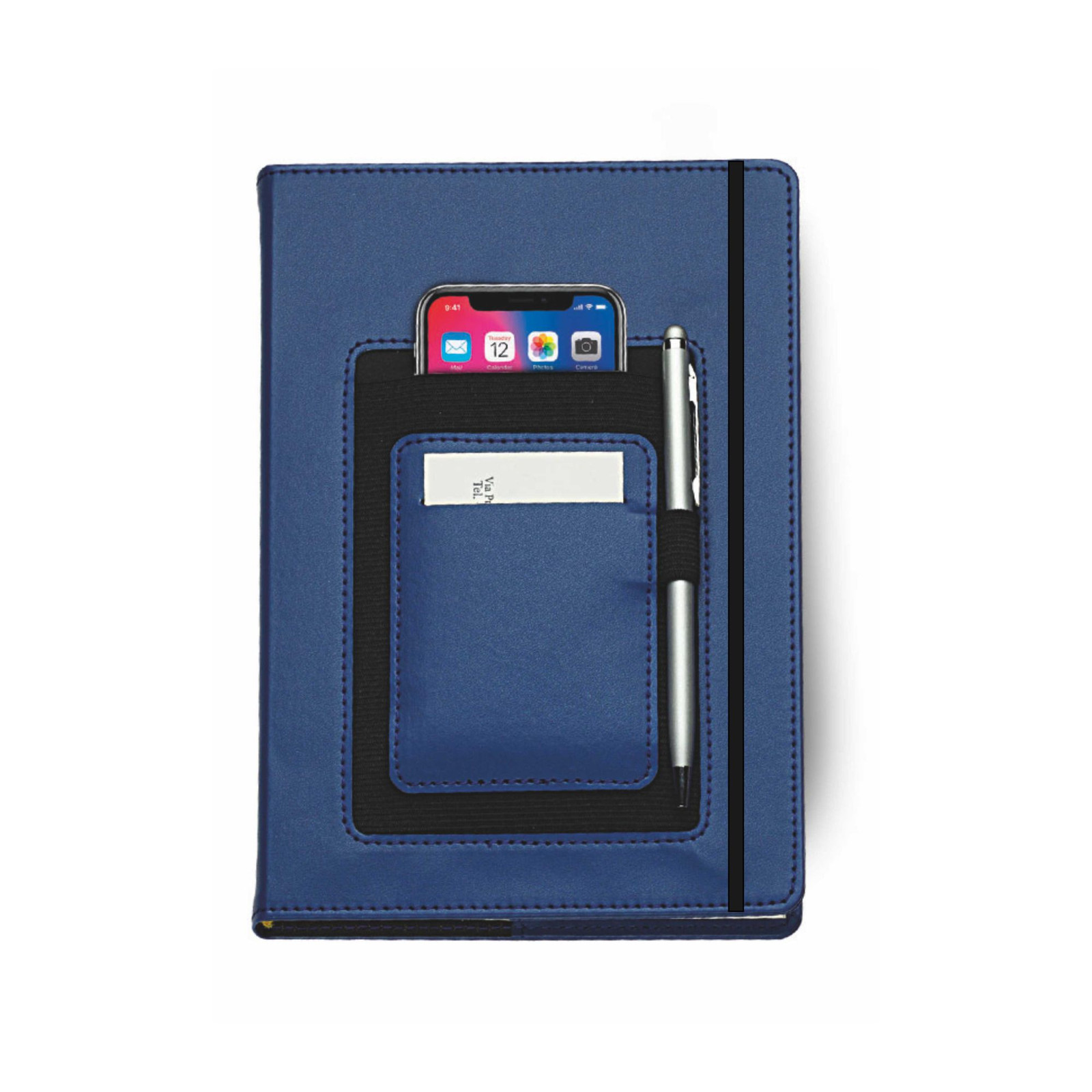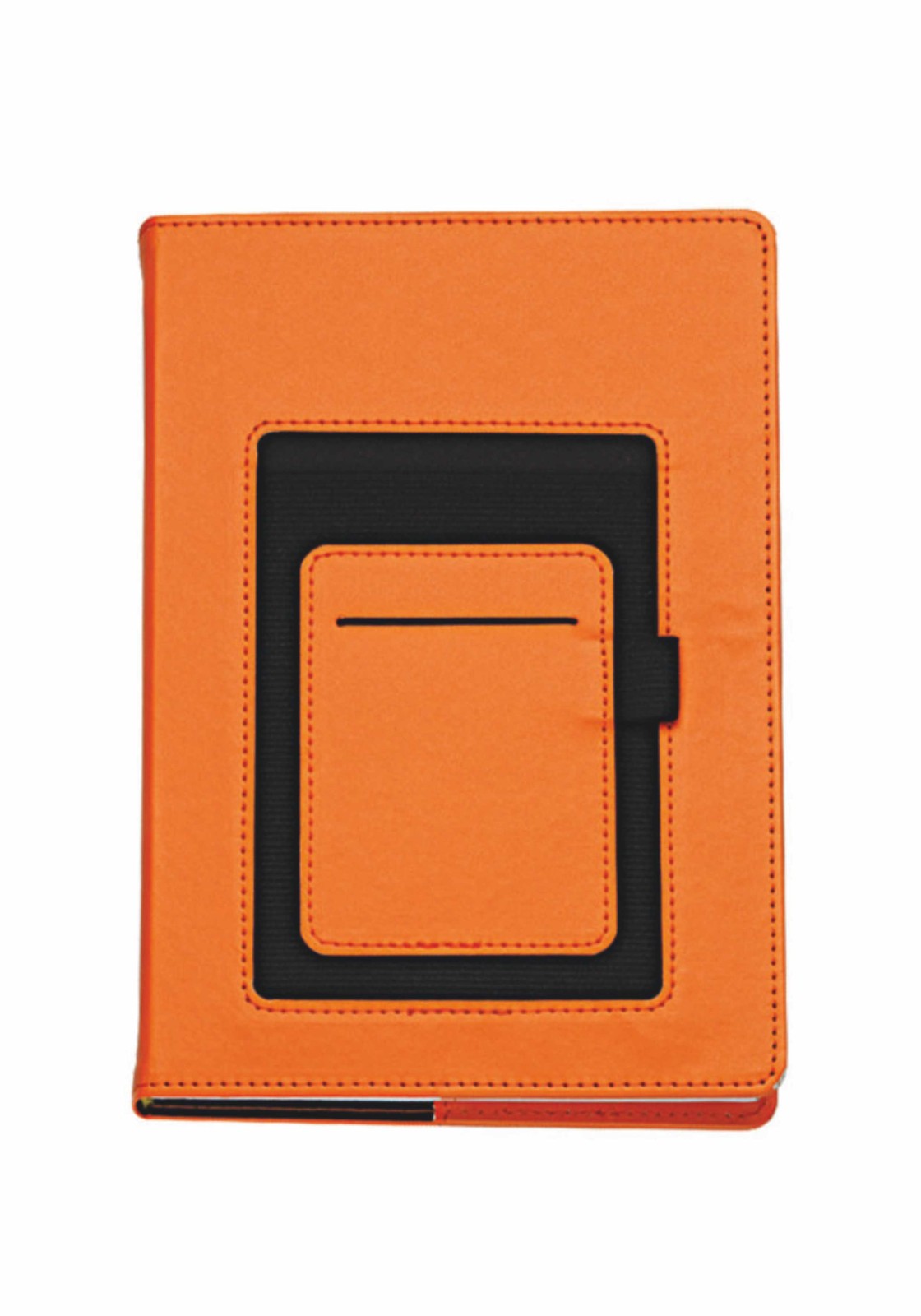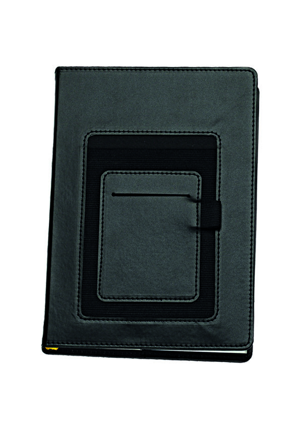 Agenda in PU termovirante con elastico. 320 pag. Vari scomparti esterni, p/cellulare, p/penna e p/card. Interno mobile (15x21). Stampa 2 colori. Rubrica telefonica, carta bianca. Multilingue. Confezione in astuccio. Colori: arancio, bianco, blu, nero, rosso e verde. Dimensioni: cm 16x22 Imballo: 30x colore
