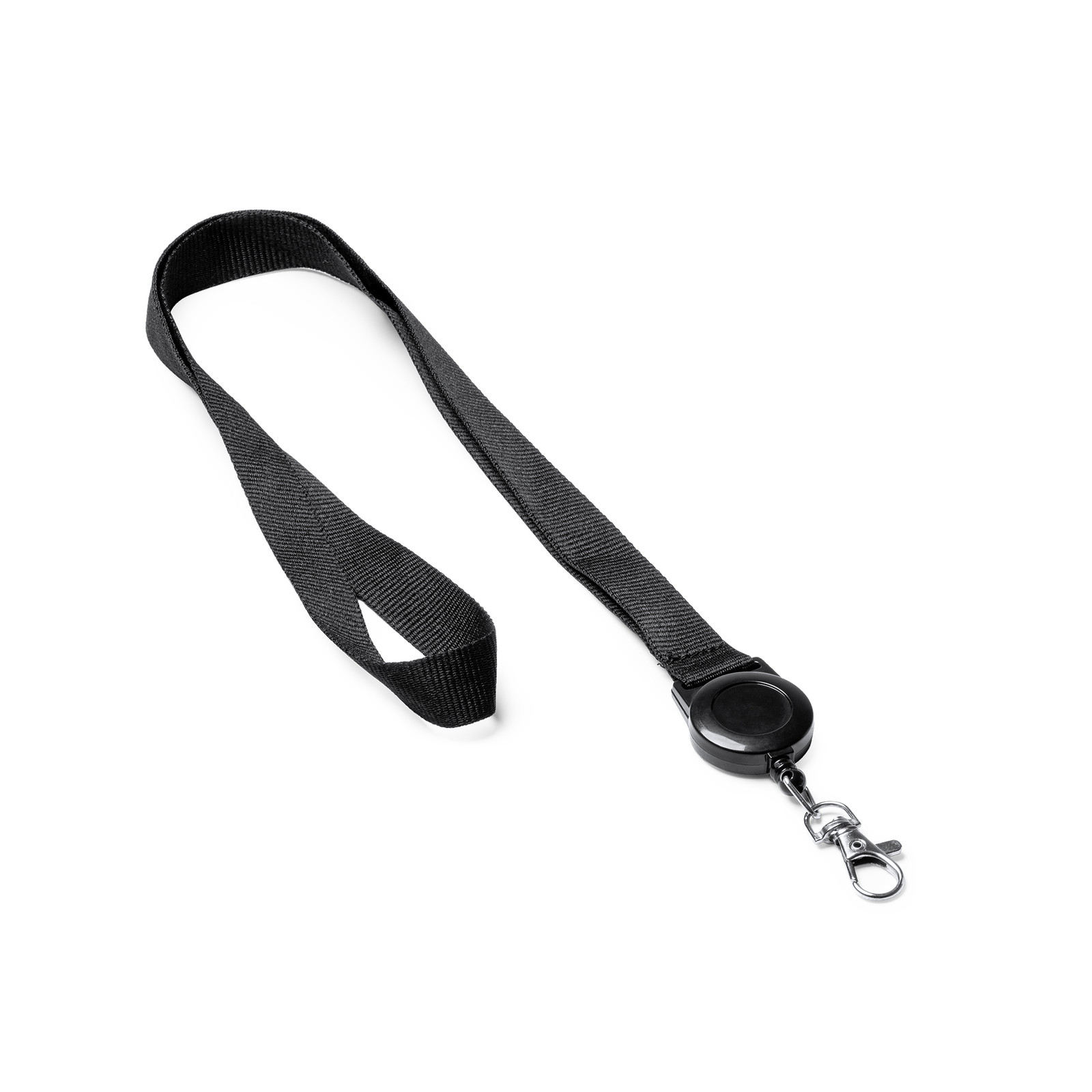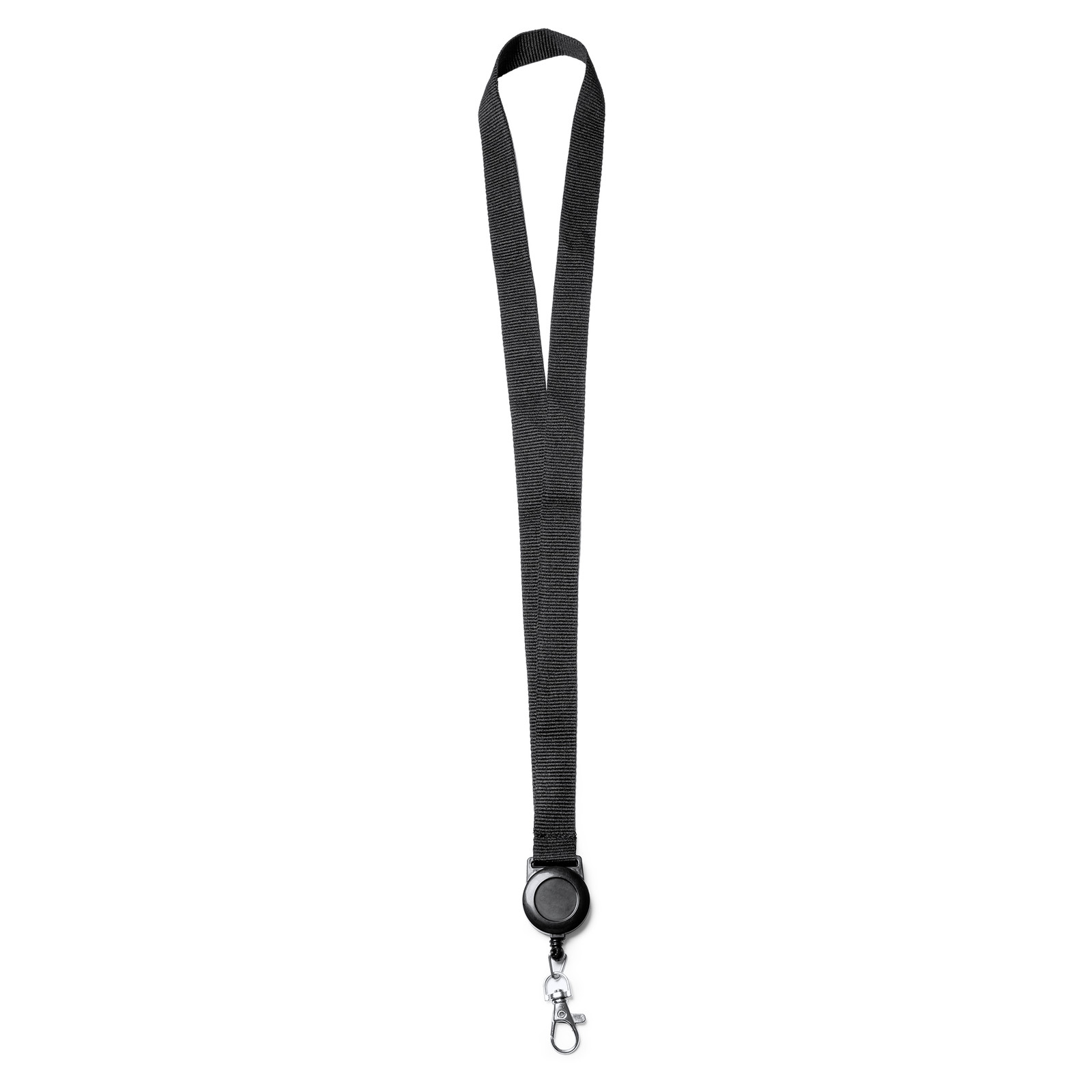 Lanyard con gancio retrattile, area di stampa ø 1,5cm. In poliestere. Dimensioni: cm 55x1x3,2. Imballo: 500pz.