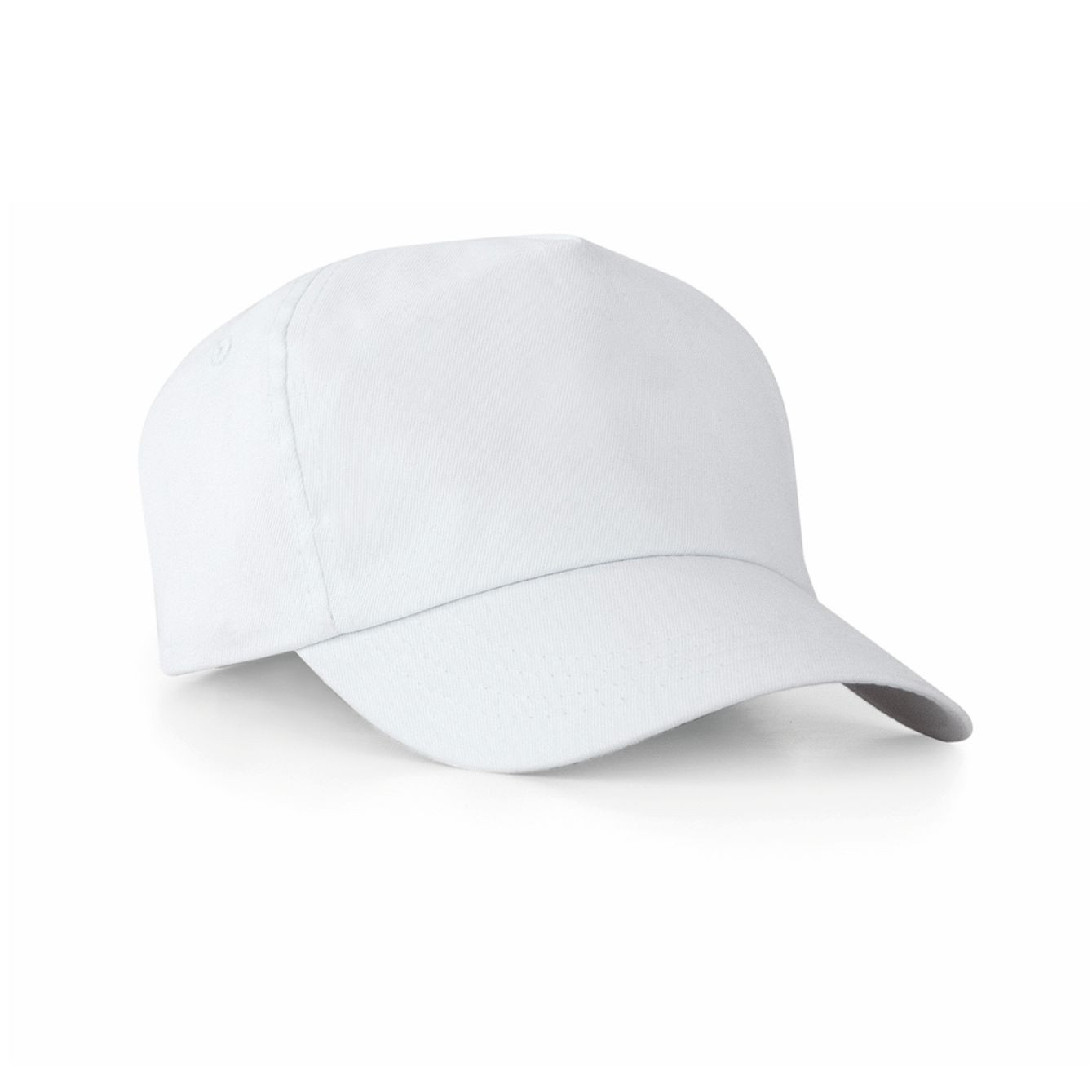Cappellino con 5 pannelli, due buchi per la ventilazione, quattro linee cucite sulla visiera. Cintura antisudore. 100% cotone, 170 gr.. Dimensione: . Confezione: non confezionato
