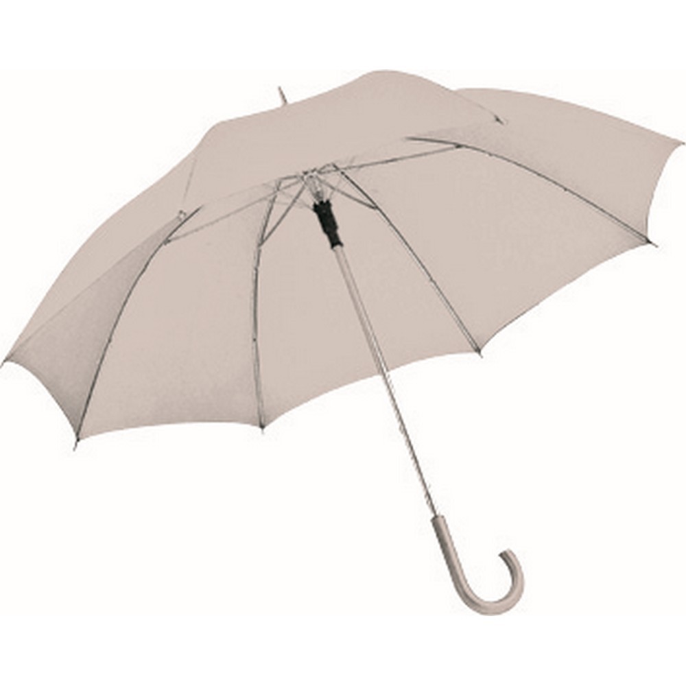 Ombrello scatto automatico. Poliestere 190T. Manico curvo e puntale in plastica. Colori: royal, bianco, giallo, rosso, verde, arancio, nero, blu. Dimensioni h cm 85 Ǿ cm 105 Imballo: 60xcolore