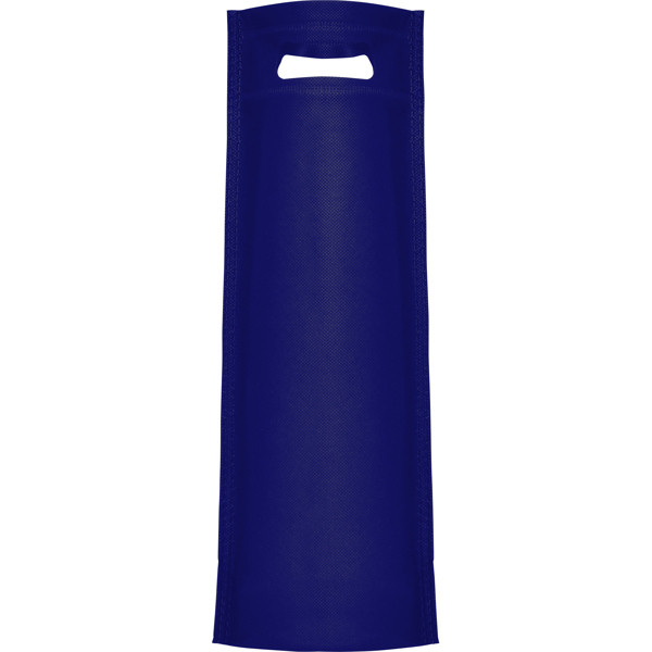 Borsa termosaldata speciale per bottiglie, con soffietto alla base, fabbricata in tessuto no woven (TNT), con manici fusellati. Dimensioni: 40x17cm