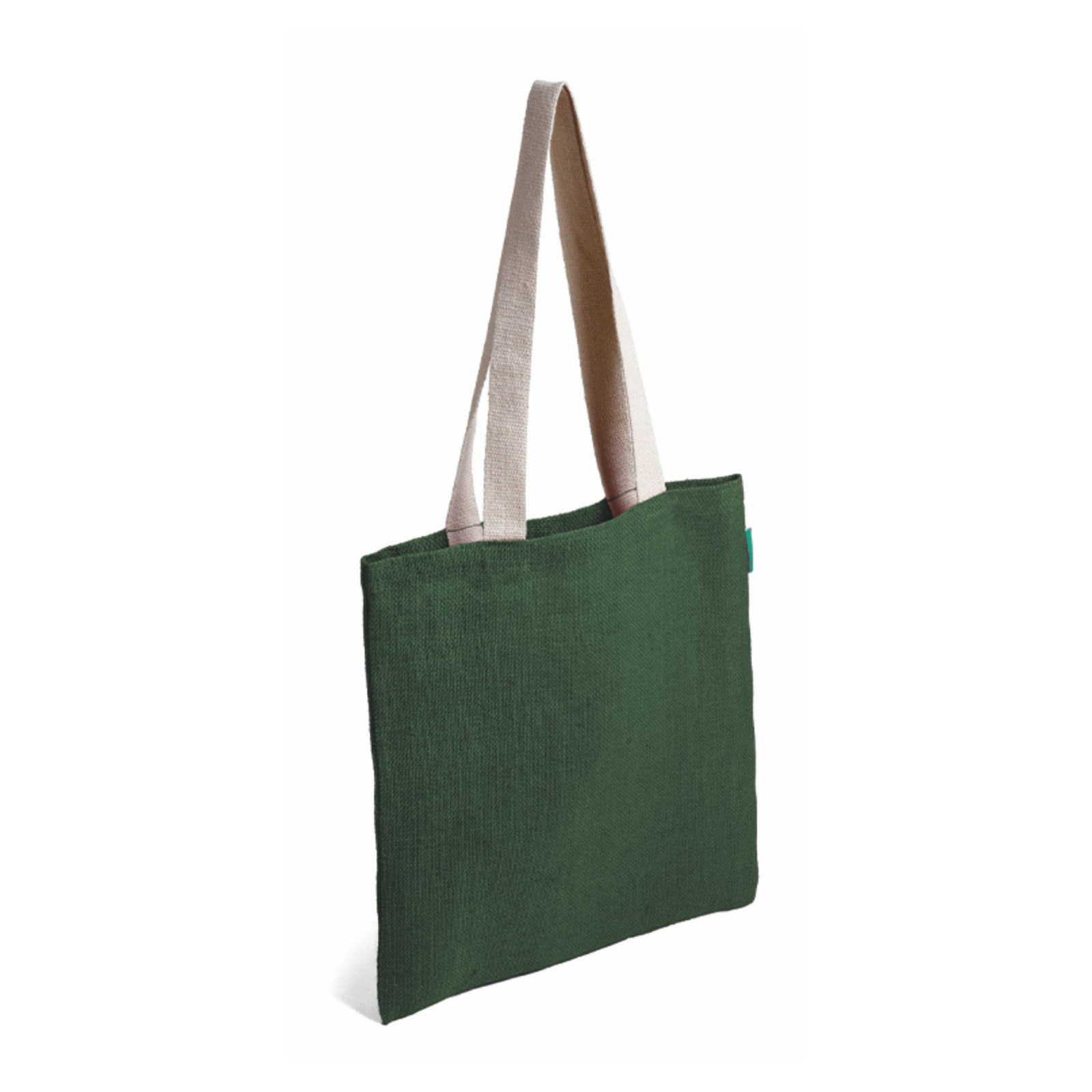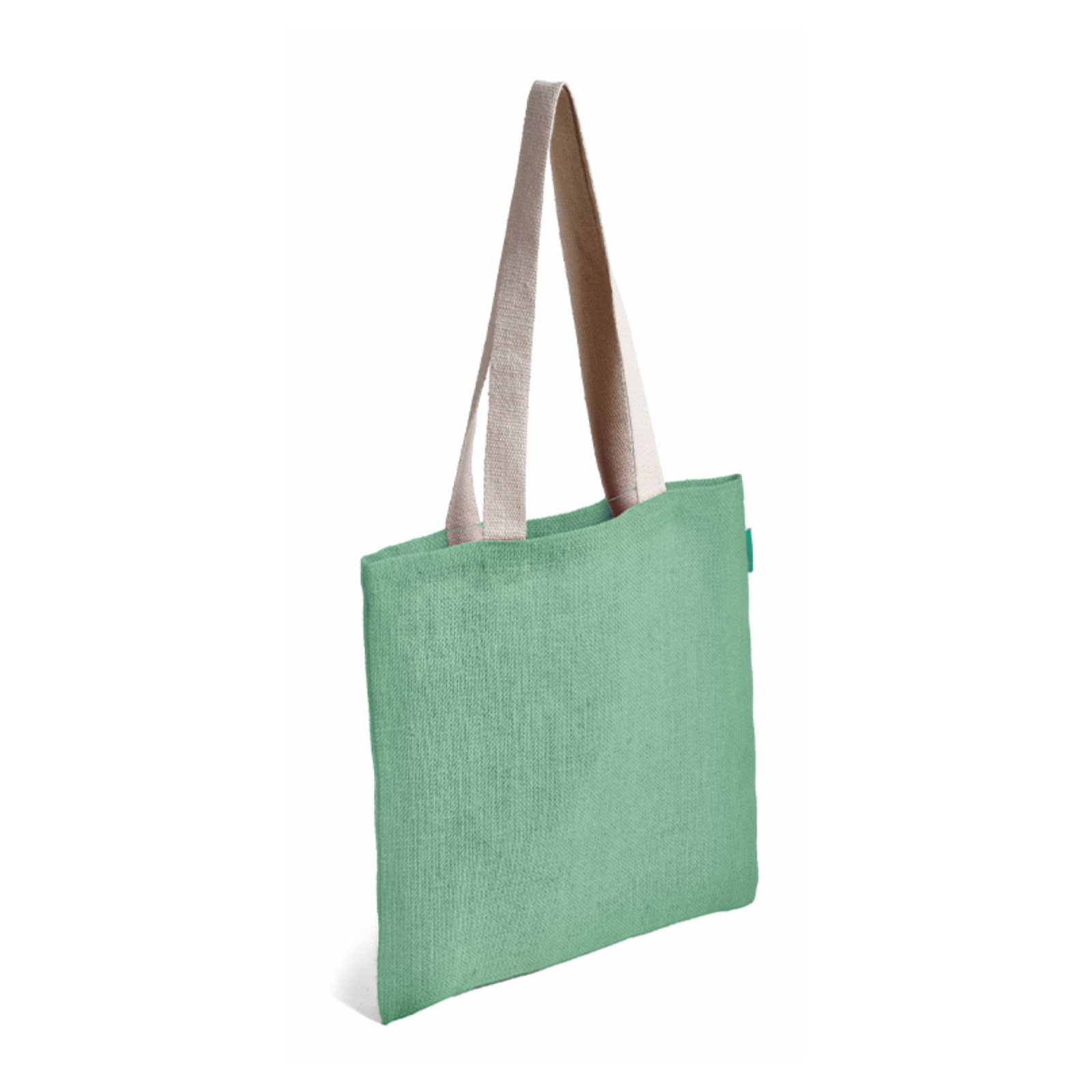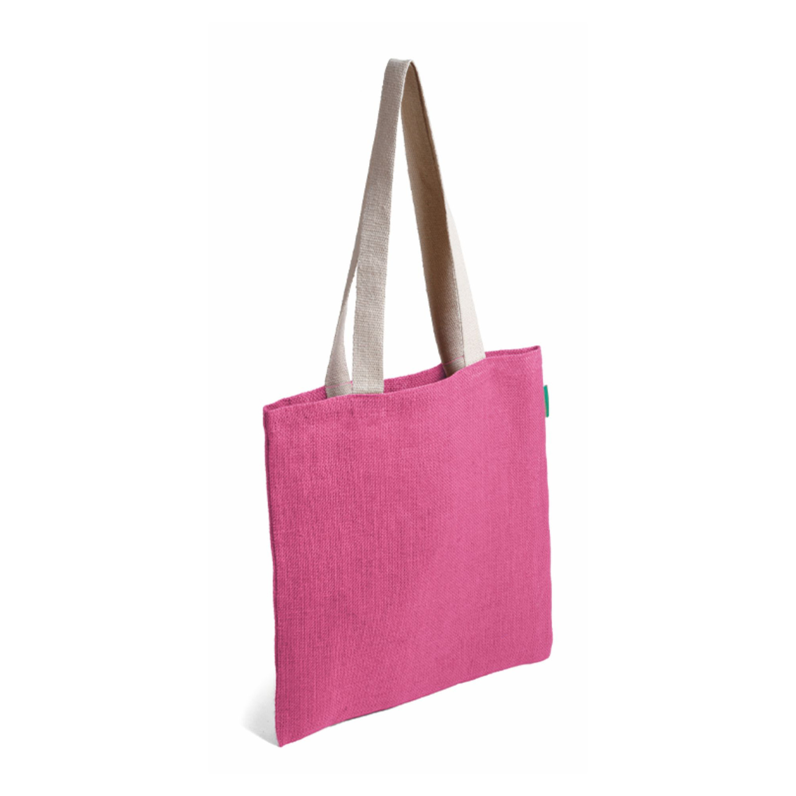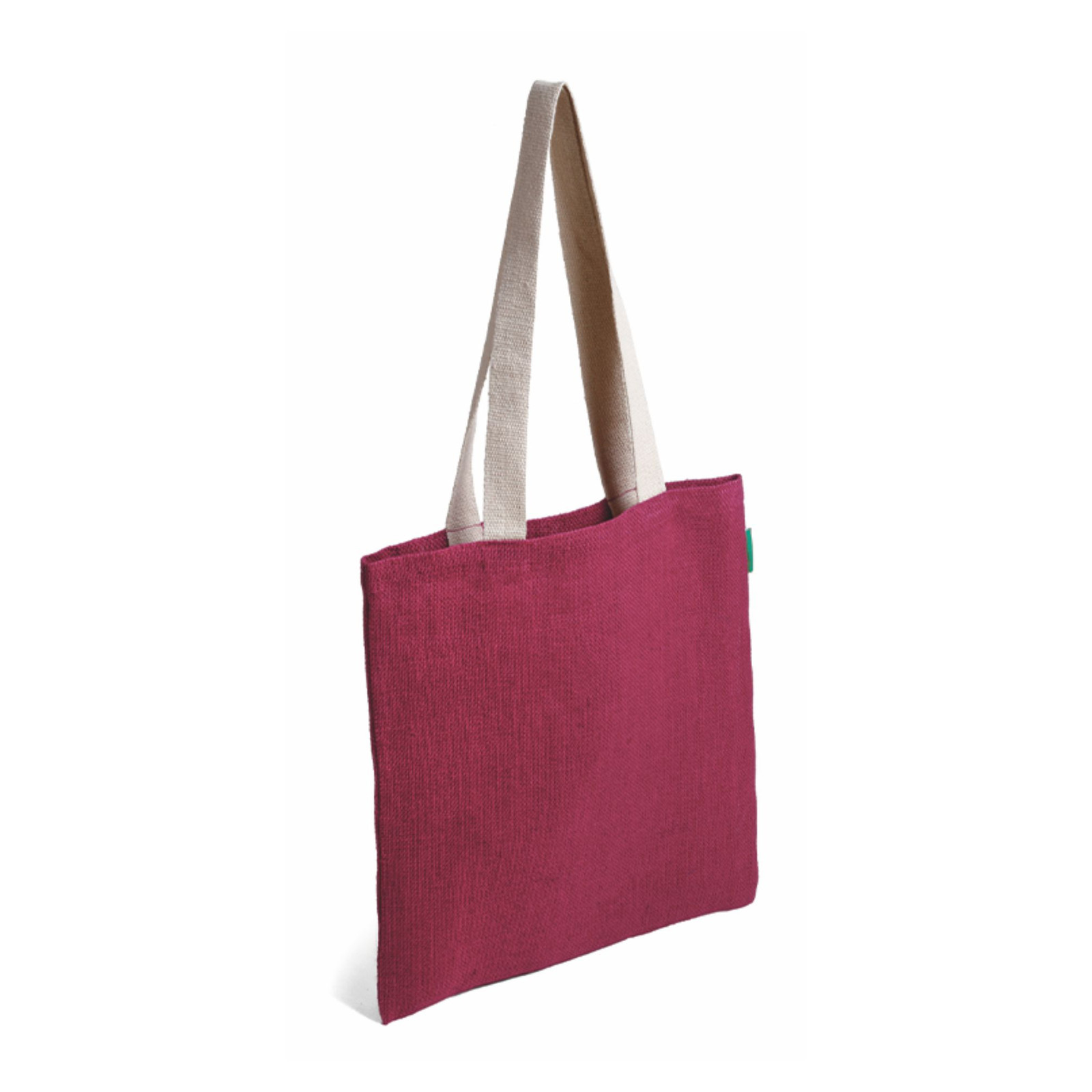 Borsa in juta tinta con manici lunghi da 70cm in corda. Dimensioni: cm 38x42. Imballo: 100pz.