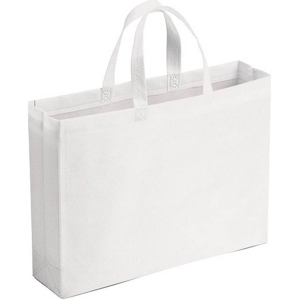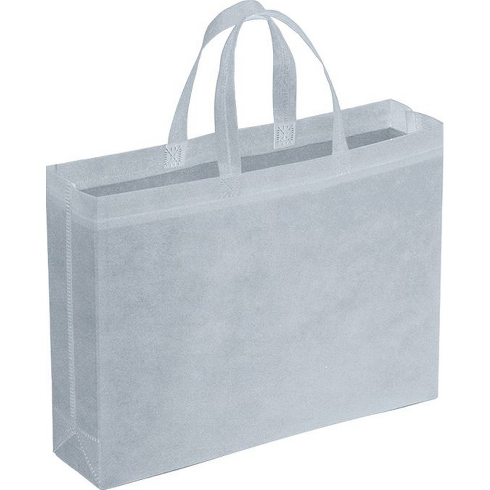 Borsa shopping TNT con soffietto (cm.10). Termosaldata. Doppio manico (cm.2x40). Colori: tiffany, rosso, blu, silver, nero, bianco, fuxia, arancio, verde, giallo, blu scuro, verde scuro. . Dimensioni cm. 42x32x10 Imballo: 100xcolore