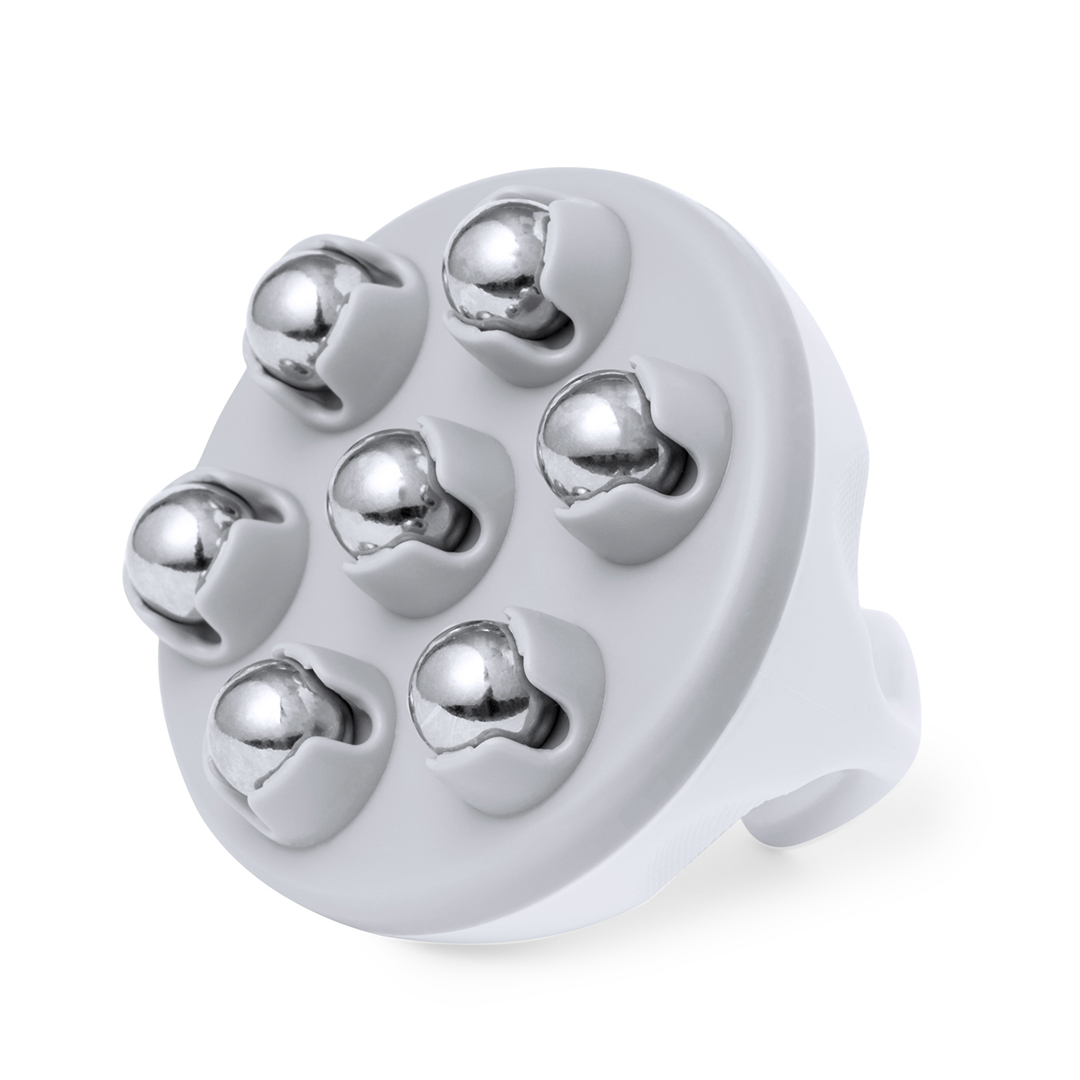 Massaggiatore in resistente ABS con sfere in metallo. Progettato per dare sollievo e benessere. L'impugnatura ergonomica garantisce un utilizzo confortevole, mentre le sfere metalliche ad effetto freddo favoriscono l'assorbimento delle creme, rilassando la pelle affaticata. Presentato in una scatola individuale dal design kraft.