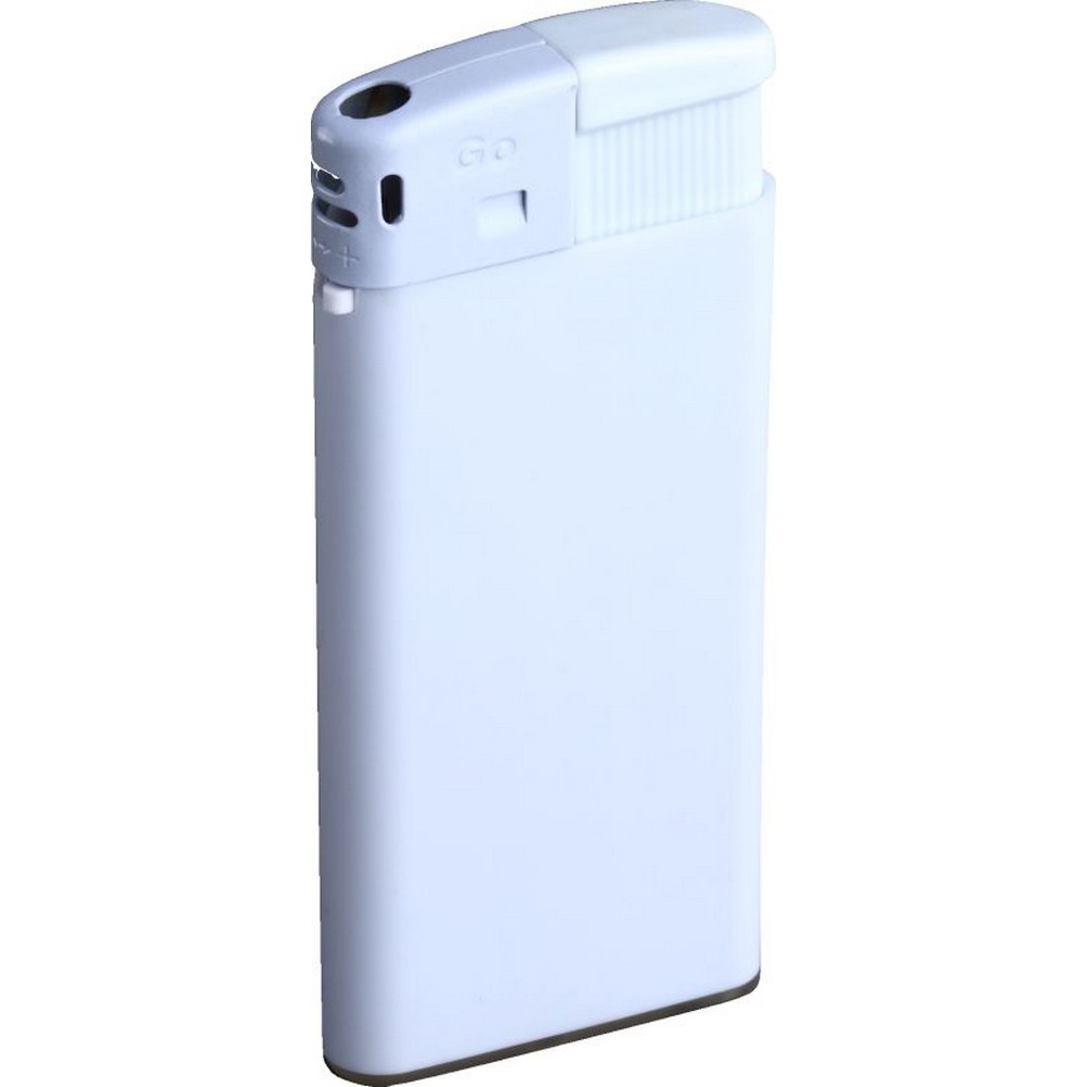 Accendino ricaricabile in plastica. Colori: bianco, giallo, rosso, blu, nero. Dimensioni 3,5x 7,9x0,9 Imballo 500x colore