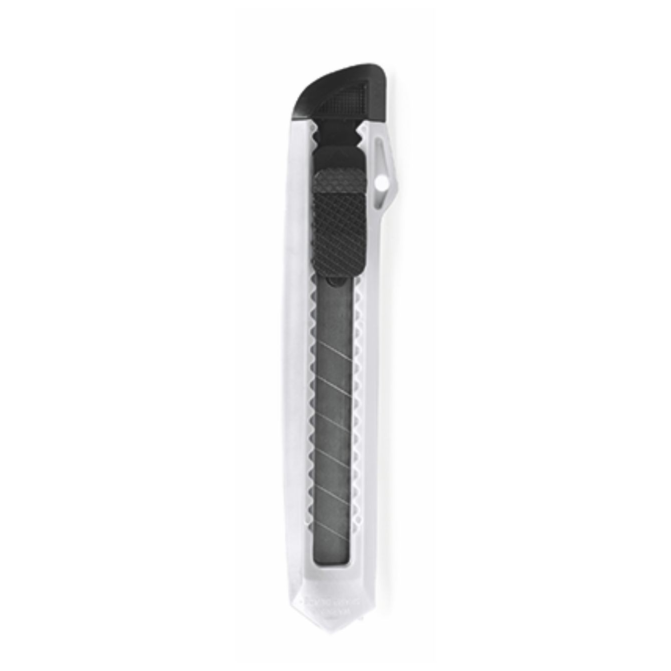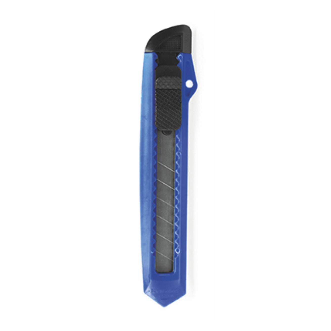 Taglierino a lama larga e corpo in ABS. Impugnatura ergonomica fustellata e cappuccio rimovibile per il taglio e la regolazione della lama.. Dimensione: cm 3x15,5x1,4. Confezione: non confezionato