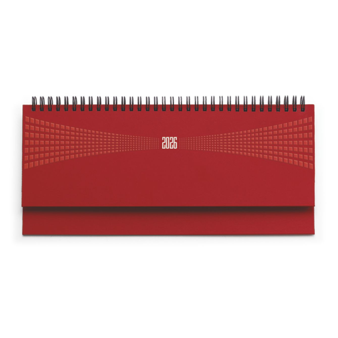 Planning spiralato in matra. 128 pagine. Carta usomano bianca 70 gr. Interno stampa 2 colori, datato. Colori: blu, verde, bordeaux, nero, rosso, grigio. Dimensioni cm 30x15 Imballo: 20xcolore