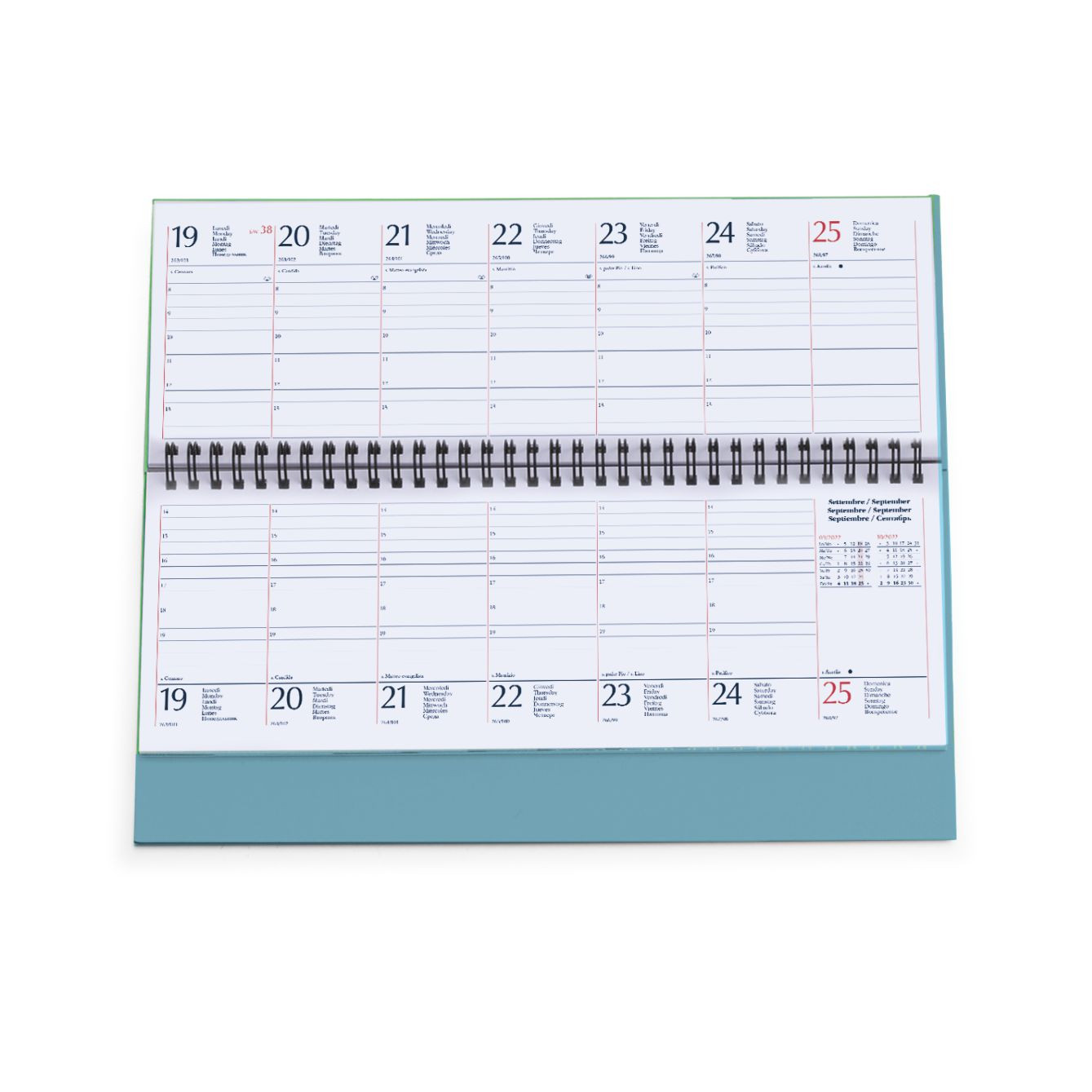 Planning spiralato in materiale termovirante da 128 pag. carta usomano bianca 70g/m², rubrica stampata. Dimensioni: cm 30x15