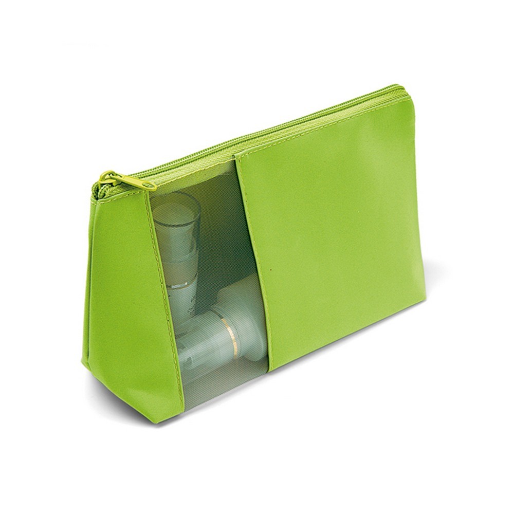 Pochette in poliestere. Chiusura con zip Colori: giallo, sky nero, bianco, fuxia, verde, rosso. Con-fezione in polybag. Dimensioni cm. 21x14x9,5 Imballo: 100xcolore