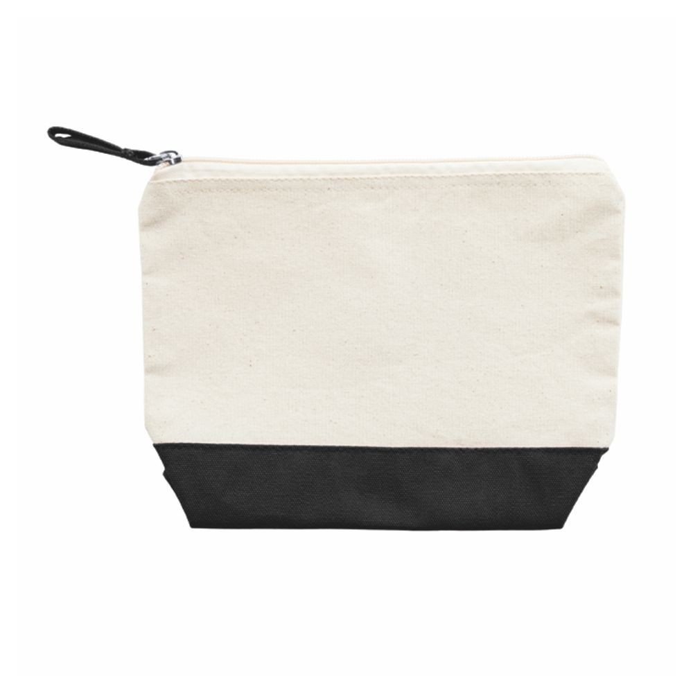Pochette in canvas 280 g/m2. Bicolore. Chiusura zip con tirante coordinato. Colori: blu, verde, rosso, nero, bianco. Dimensioni cm. 22,5x17x5,5 Imballo: 300xcolore
