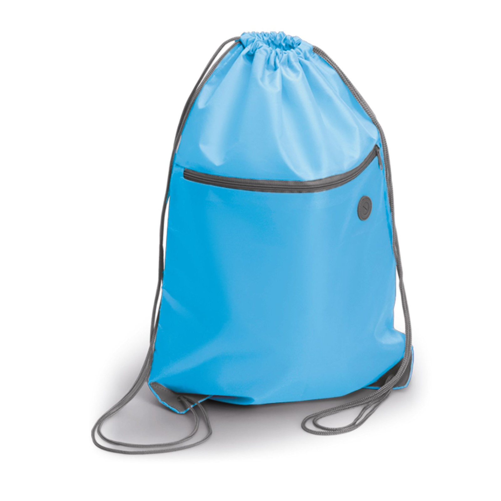 Zainetto in poliestere 210D.Chiusra con coulisse. Tasca anteriore con zip, uscita auricolari. Colori: verde, blu, bianco, rosso, nero, royal. Dimensioni cm. 34x44 Imballo: 400xcolore