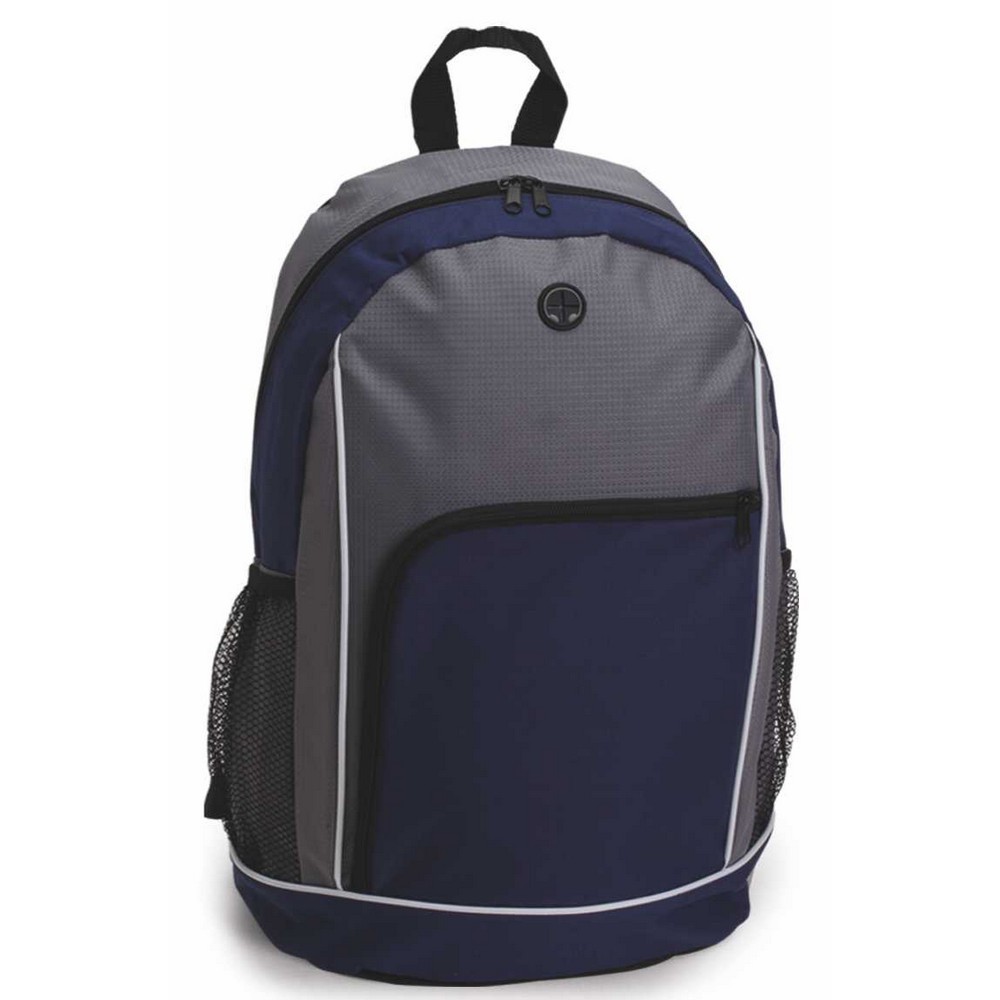 Zaino in poliestere 600D e jaquard. Chiusura doppio cursore, uscita auricolari. Spallacci imbottiti e regolabili. Taschini laterali elasticizzati in rete mesh. Tasca anteriore chiusa da zip. Colori: ros-so, arancio, blu, royal, nero, verde. Confezione in polybag. Dimensioni cm. 30x17,5x44,5 Imballo: 40xcolore