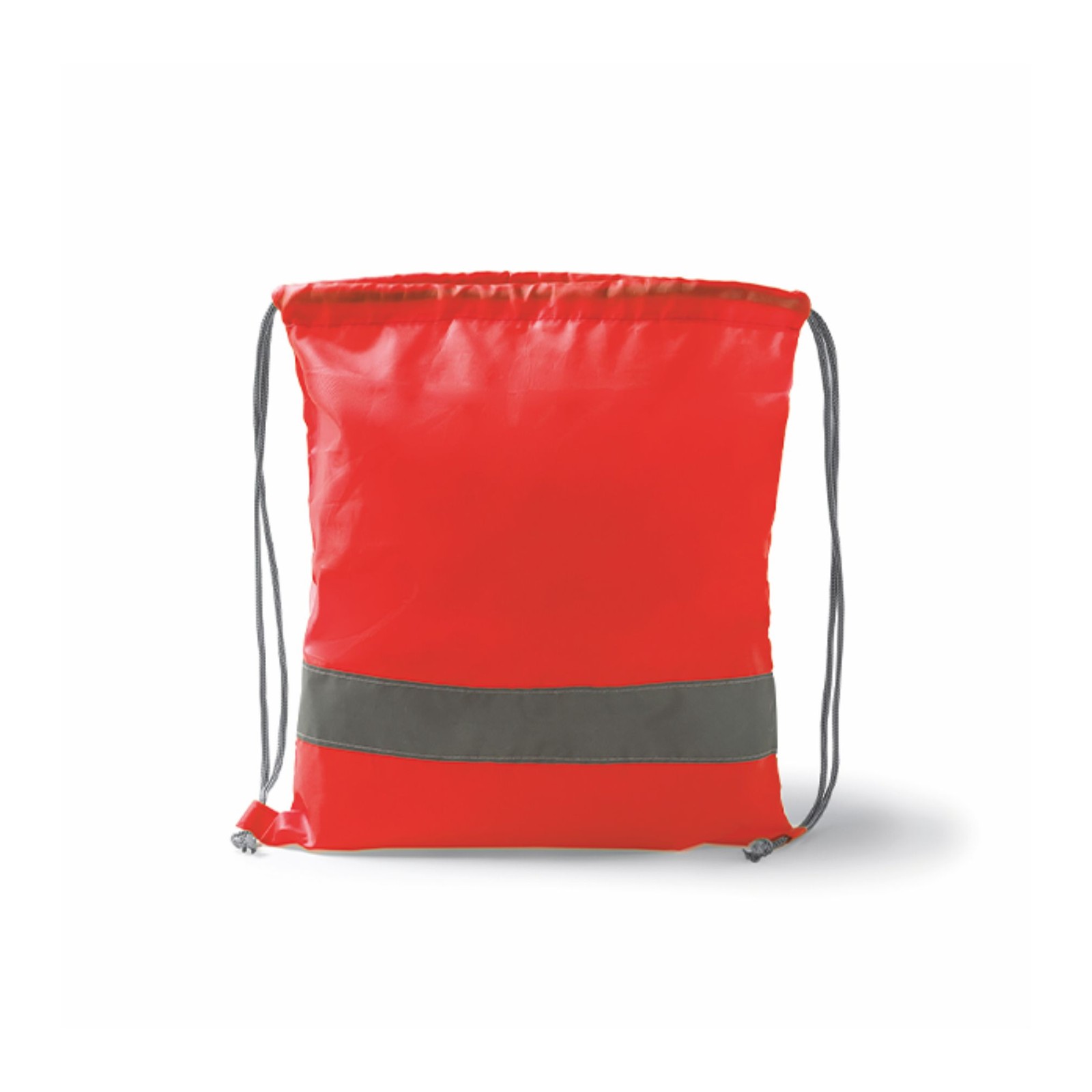 Sacca con coulisse e striscia ad alta visibilità in poliestere 210D. Dimensioni: cm 34,5x41. Imballo: 300pz.