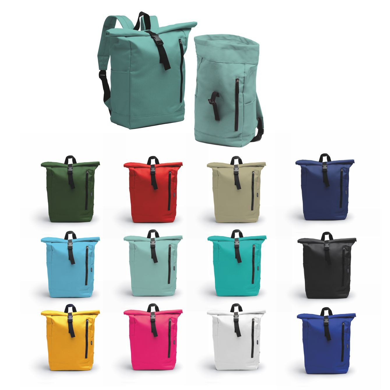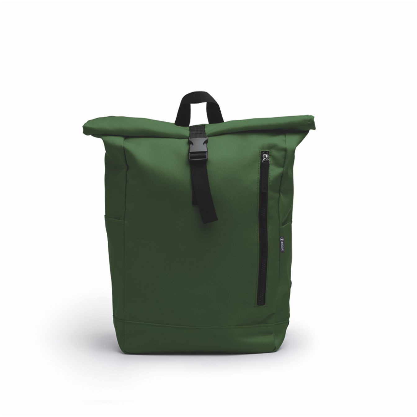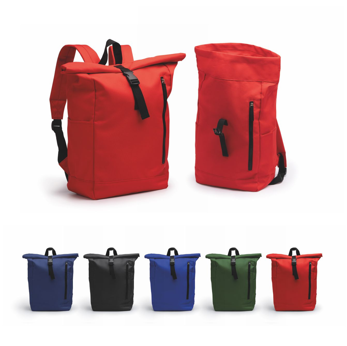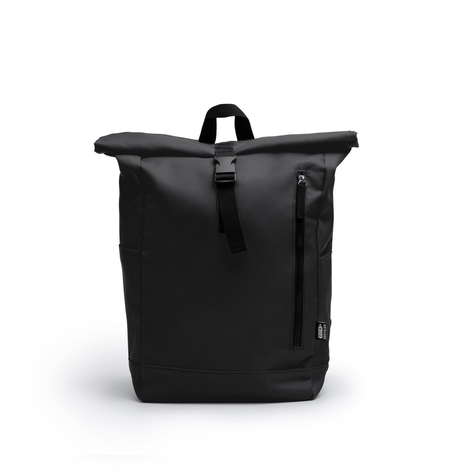 Zaino in poliestere RPET. Scomparto principale spazioso con apertura estensibile. Tasca esterna con cerniera e due tasche laterali. Spallacci e schienale imbottiti. Dimensioni: cm 26,5x52,5x16