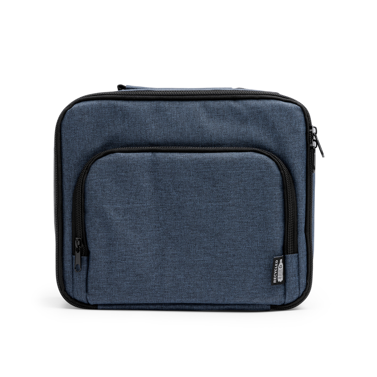 Borsa termica in RPET 600D con design vigore. È dotato di una tasca esterna aggiuntiva, interno è dotato di un rivestimento isotermico, una pratica maniglia per il trasporto. Dimensioni: cm 25x21x10