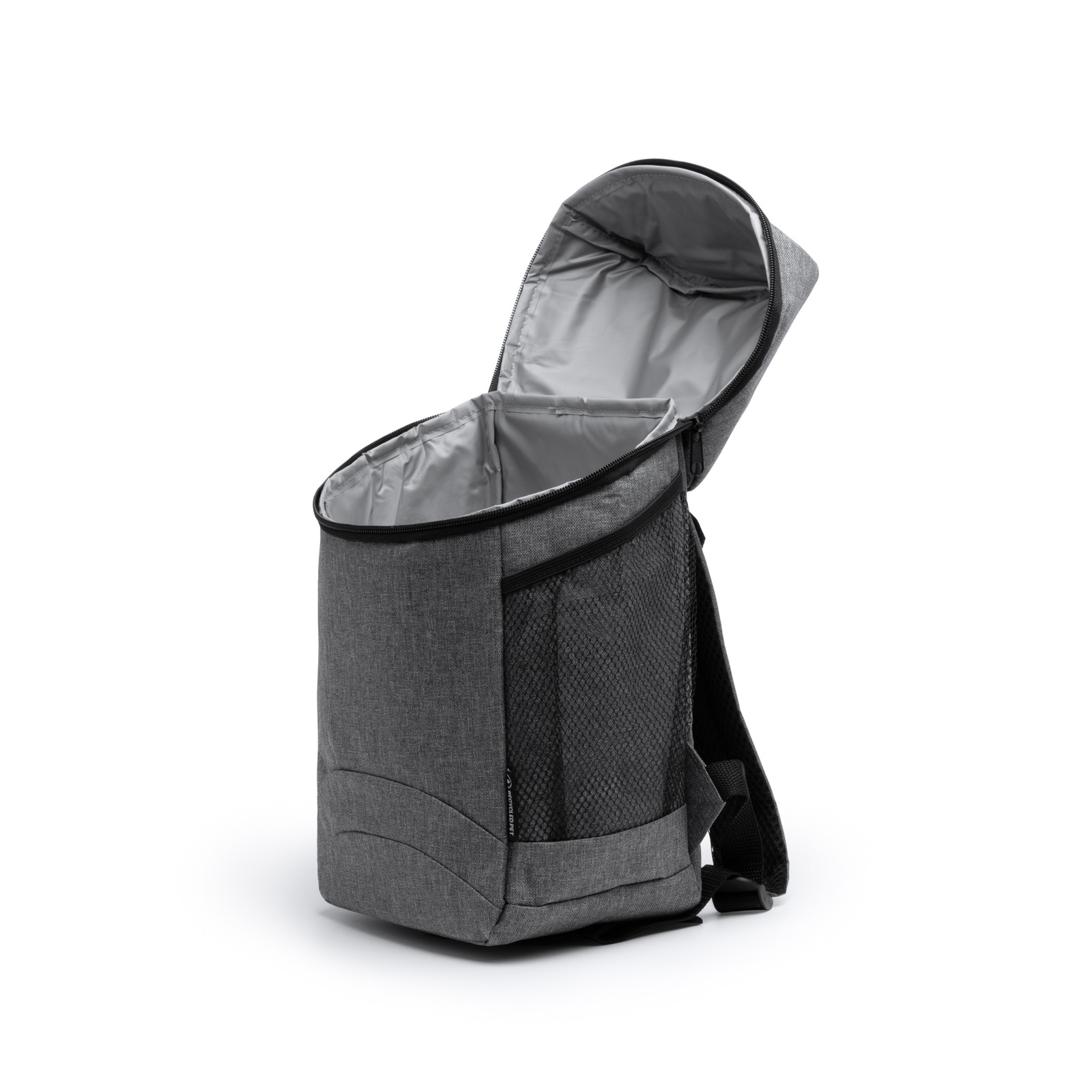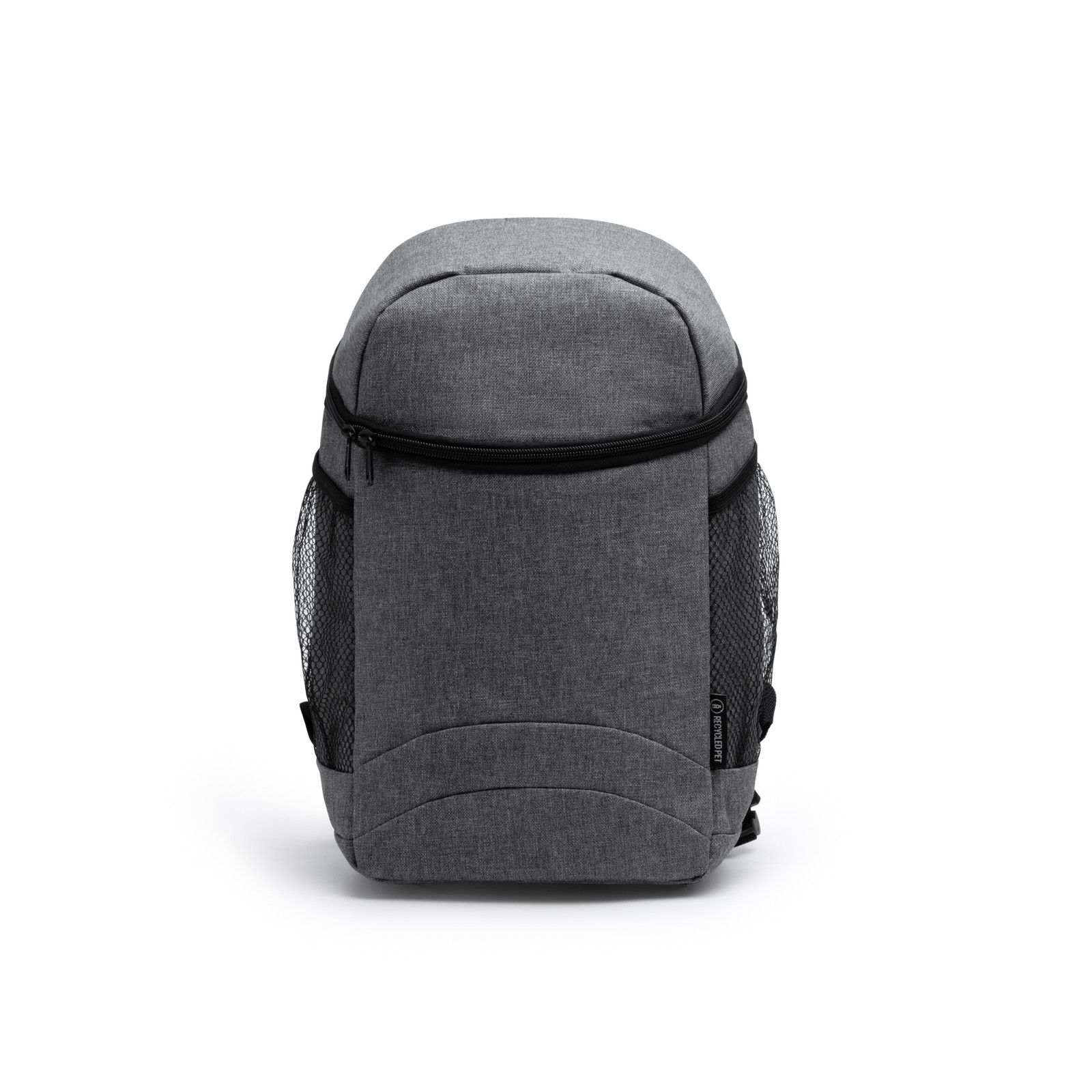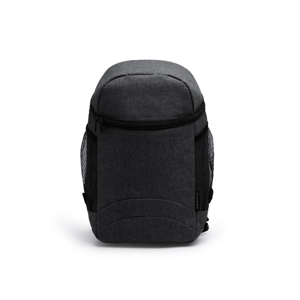 Zaino termico in poliestere RPET con design mélange. Ampio scomparto principale con fodera isotermica. Dimensioni: cm 21x36x14