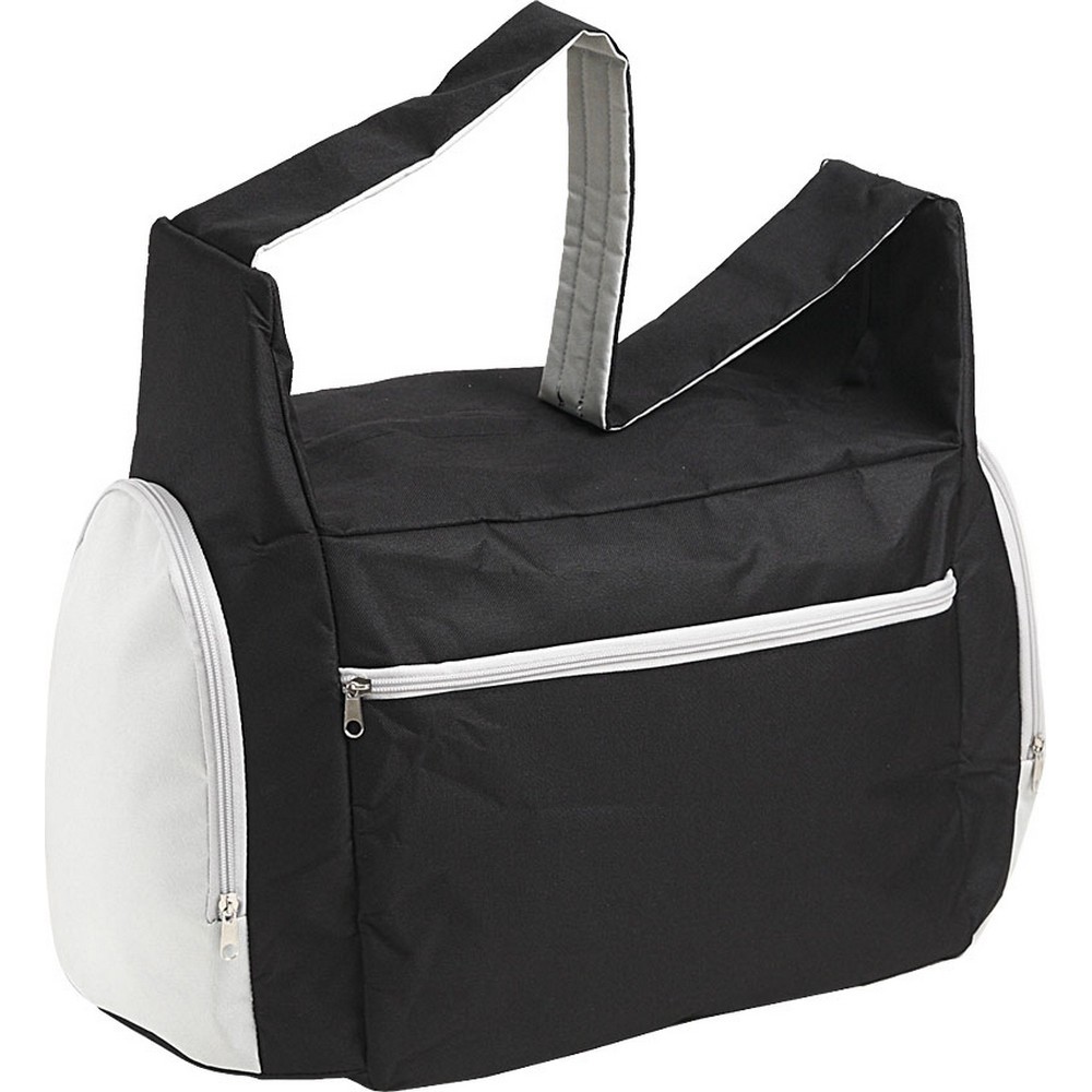 Borsa palestra in poliestere 600D. Tascone anteriore con zip. Doppie tasche laterali chiuse da zip: uso termico, uso porta scarpe. Manico a tracolla salva spalle. Interno plastificato. Colori: royal, rosso, nero, blu, grigio, fuxia, verde lime, arancio. Confezione in polybag. . Dimensioni cm.53x28x30 Imballo: 20xcolore