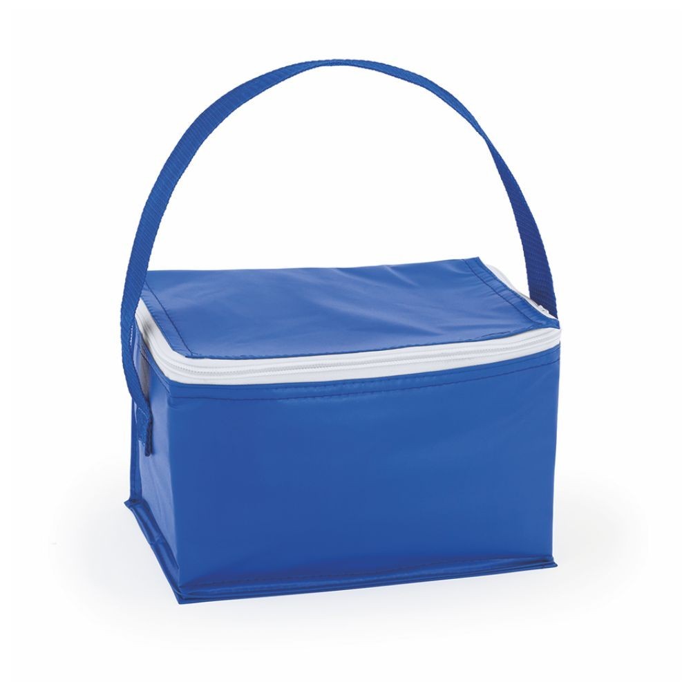 Borsa termica in pvc. Capacità 6lt.. Chiusura con zip. Comodo manico. Colori: royal, bianco, rosso, arancio, verde. Dimensioni cm. 21x15x15 imballo: 200xcolore