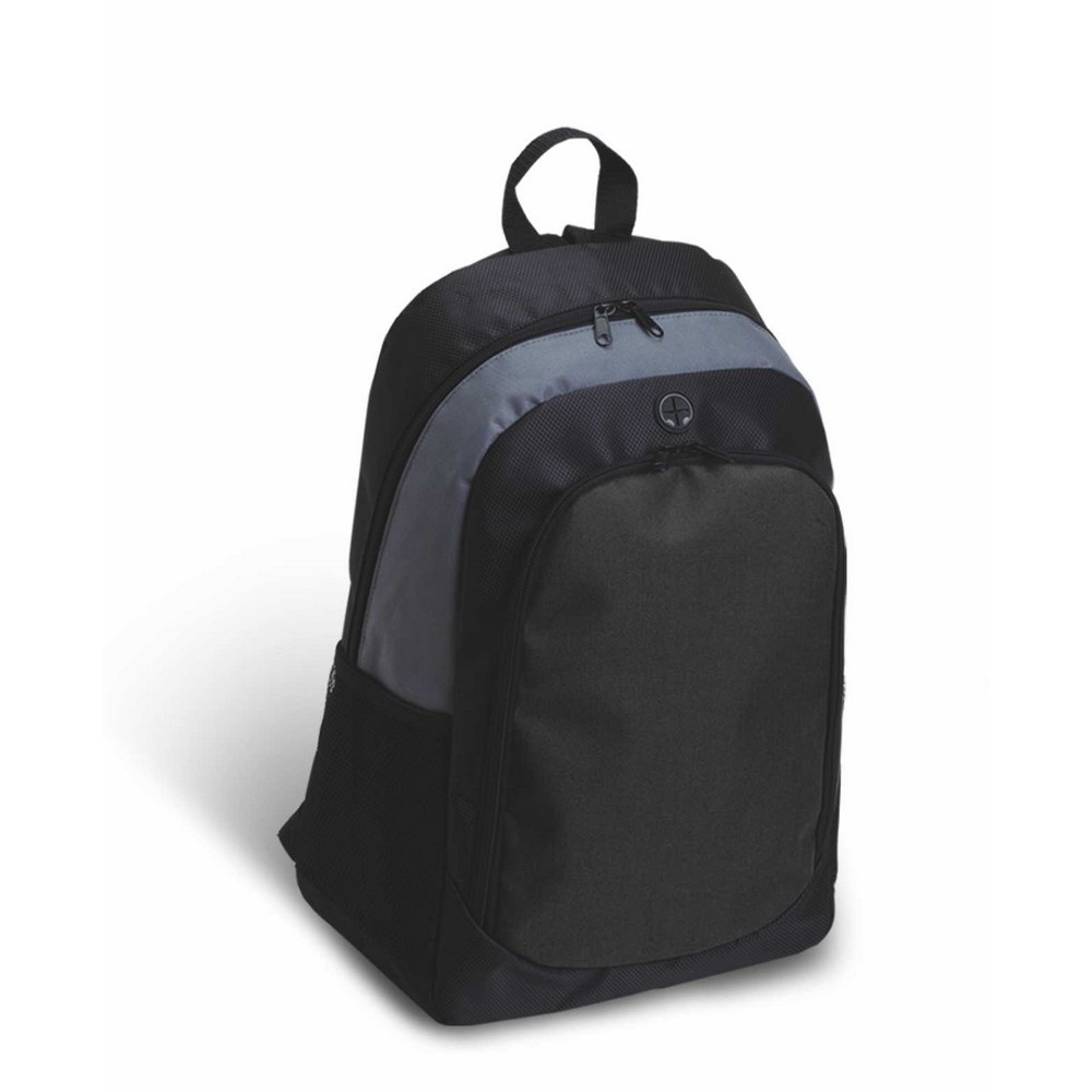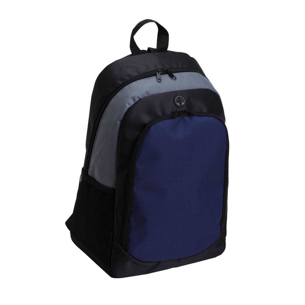 Zaino in poliestere 600D e jacquard. Chiusura con zip doppio cursore. Uscita auricolari. Tasca frontale doppio cursore. Corredato di manico rinforzato. Schienale e spallacci imbottiti e regolabili. Taschini laterali in rete mash. Colori: rosso, nero, blu, verde, royal, Confezione in polybag. Dimensioni cm. 30,5x15,5x43,5 Imballo: 40xcolore