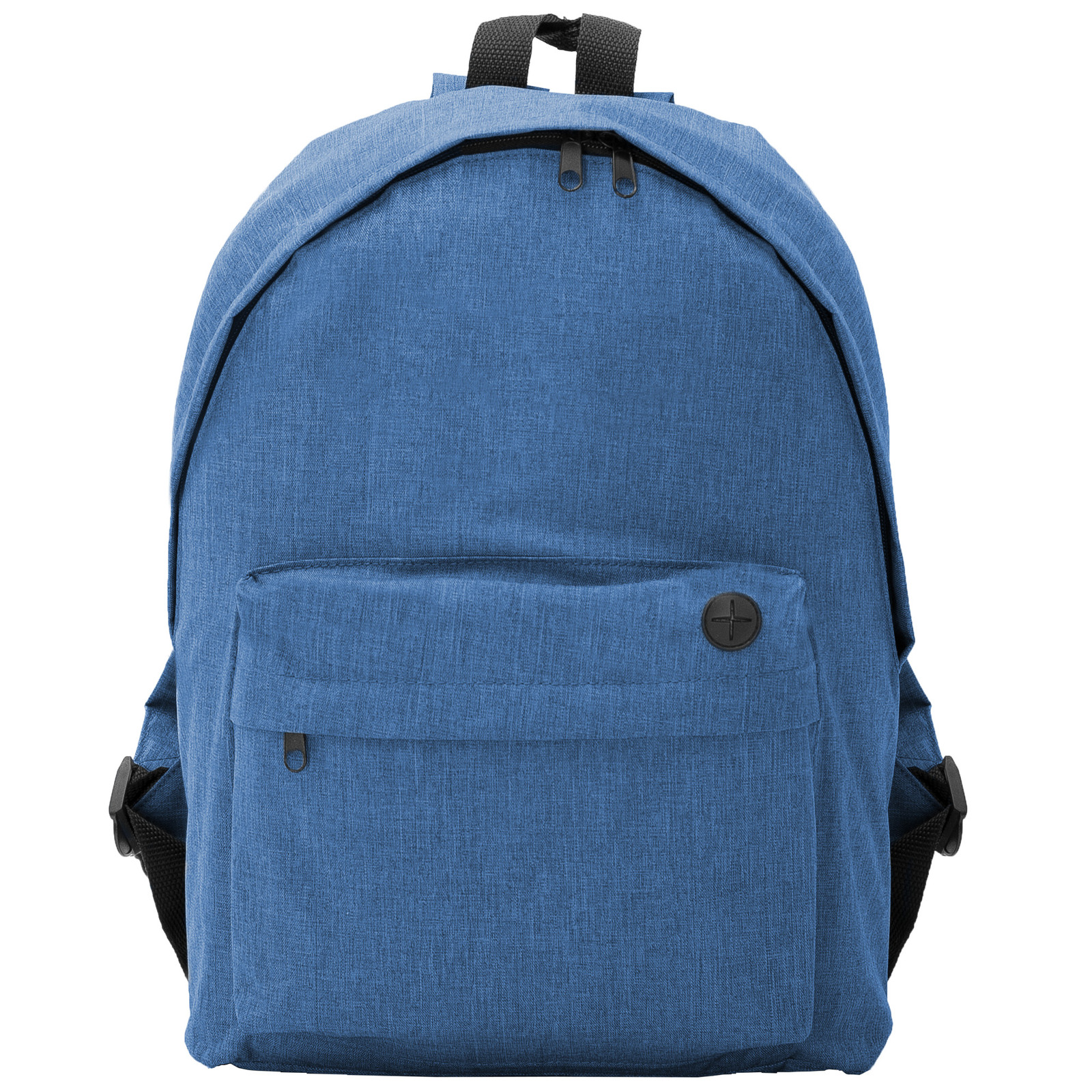 Zaino classico screziato dai colori melange. Scomparto principale con tasca frontale con cerniera e uscita cavi. Cerniere, tirazip, impugnature a contrasto. Dimensioni: cm 30 x 40 x 12. Imballo: 20pz.