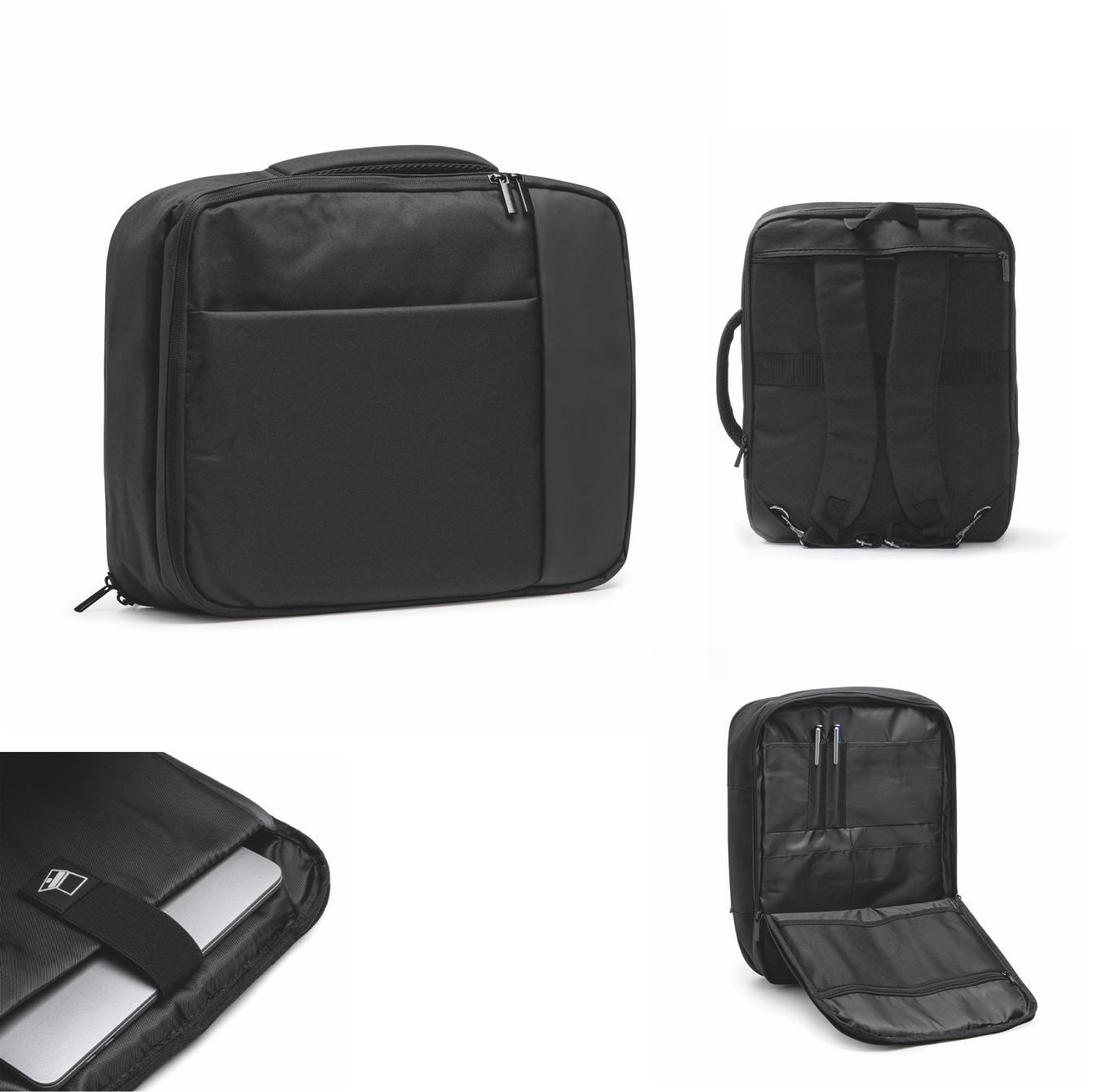 Zaino da viaggio Executive in poliestere 300D. Due tasche principali imbottite con scomparti interni e tasche ideali per computer portatili o tablet. Schienale e spallacci imbottiti. Tasca a scomparsa e cinturino per trolley. Dimensioni: cm 32x41x14