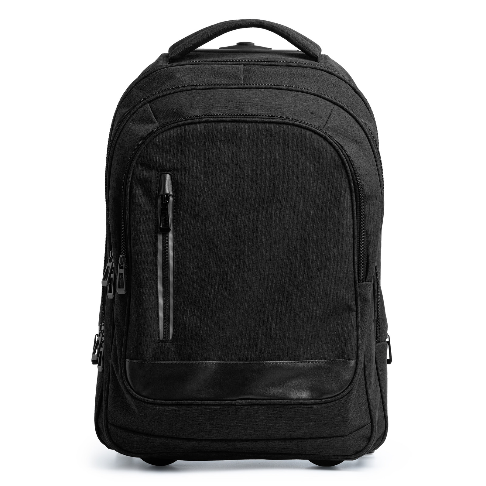 Zaino trolley in poliestere mélange 300D. Tasca principale con scomparto imbottito porta computer fino a 15’’. Due tasche con scomparti interne e una tasca frontale. Spalline imbottiti regolabili. Dimensioni: cm 33,5x51x21. Imballo: 4pz.