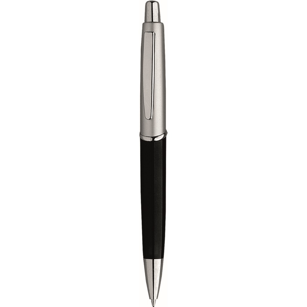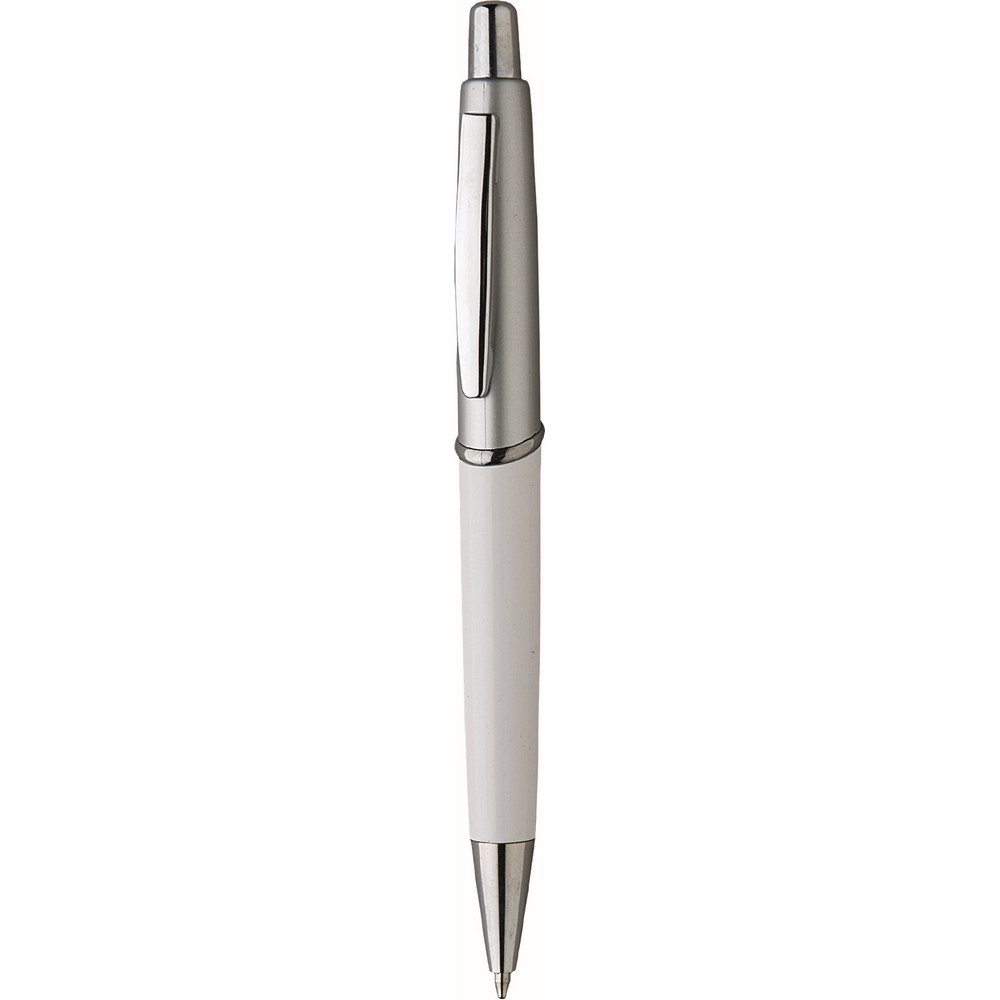 Penna sfera a scatto in plastica con clip di metallo. Fusto colorato e silver. Refill nero. Colori: vedi catalogo/sito. Imballo: 1000xcolore