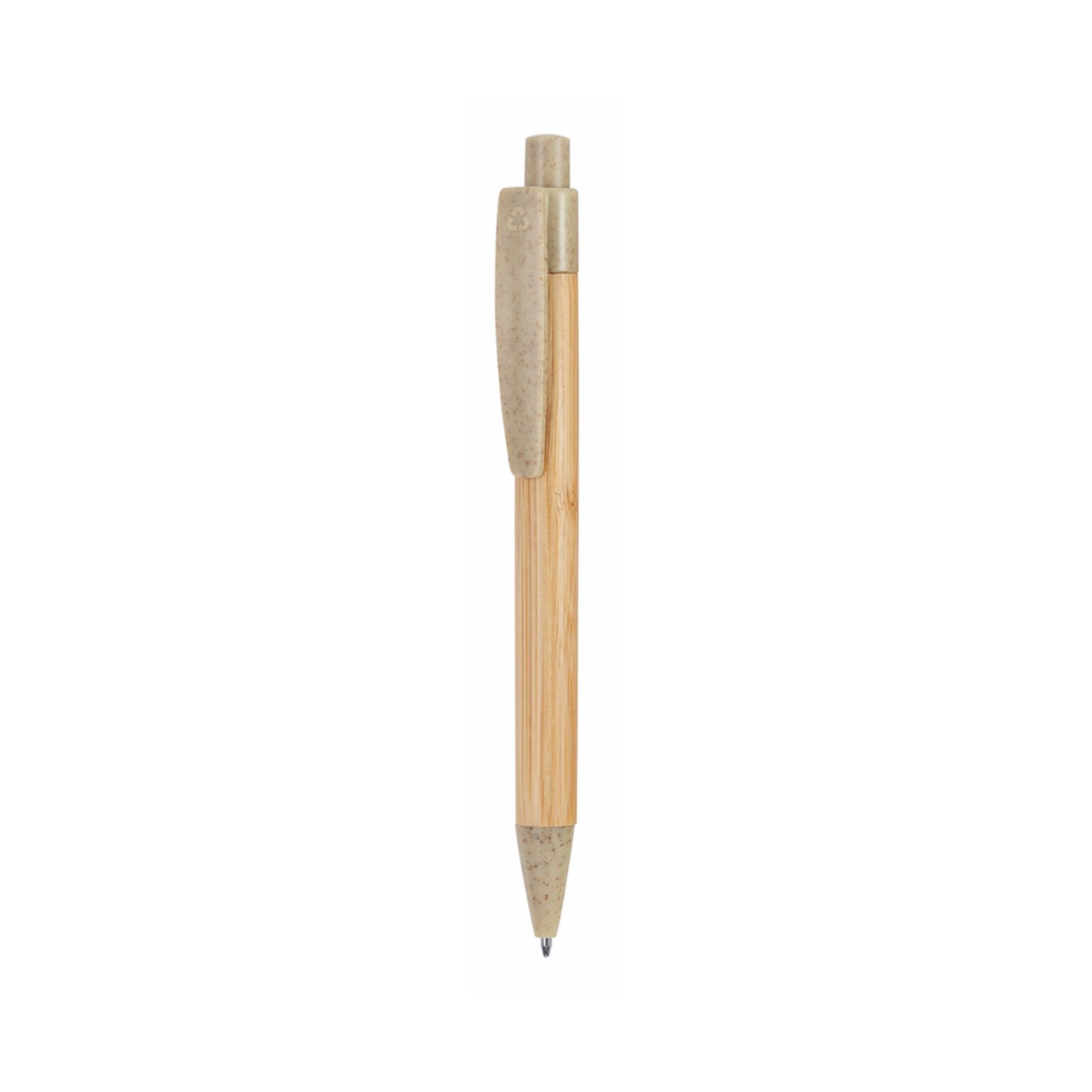 Penna a Sfera. In Bamboo con clip in paglia di frumento. Refill nero. Dimensioni: cm 14. Imballo: 1000pz.