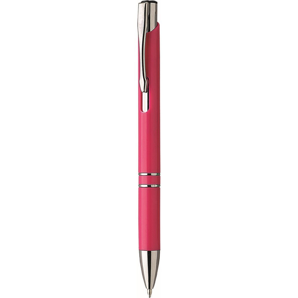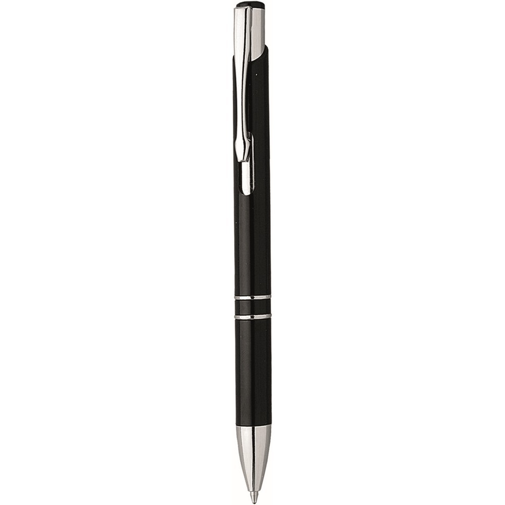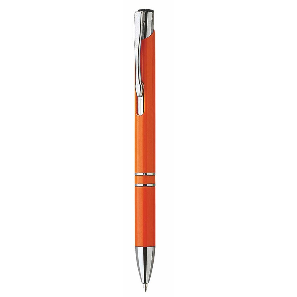 Penna sfera a scatto in plastica con clip metallo. Fusto colorato particolari silver. Refill nero. Colori: vedi catalogo/sito. Imballo: 1000xcolore