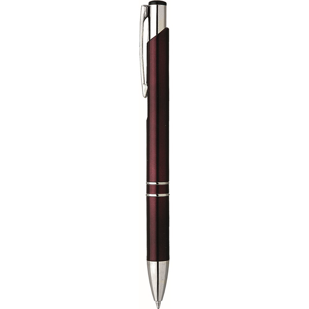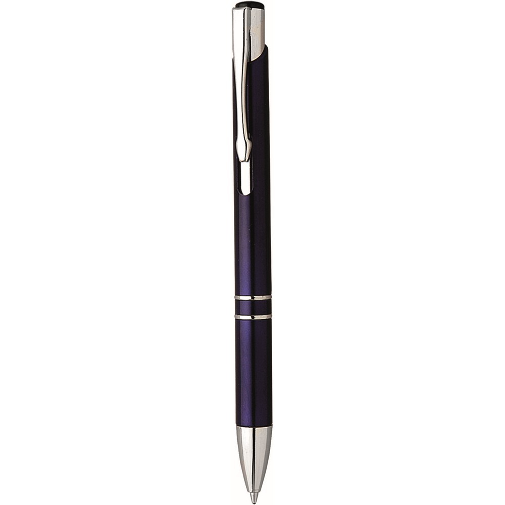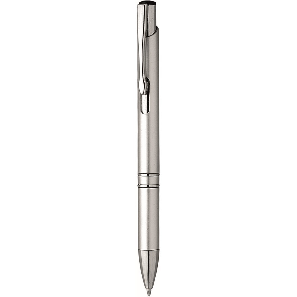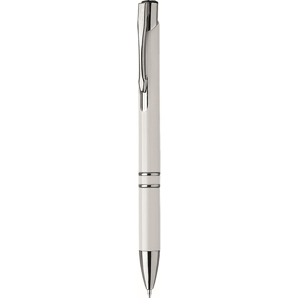 Penna sfera a scatto in plastica con clip metallo. Fusto colorato particolari silver. Refill nero. Colori: vedi catalogo/sito. Imballo: 1000xcolore