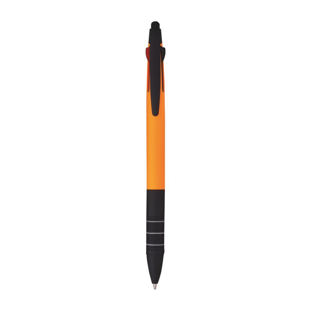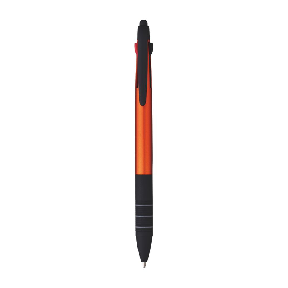 Penna sfera a scatto, touch, in plastica. 3 refill: blu, nero e rosso. Clip in plastica. Colori: vedi catalogo/sito. Imballo: 1000xcolore