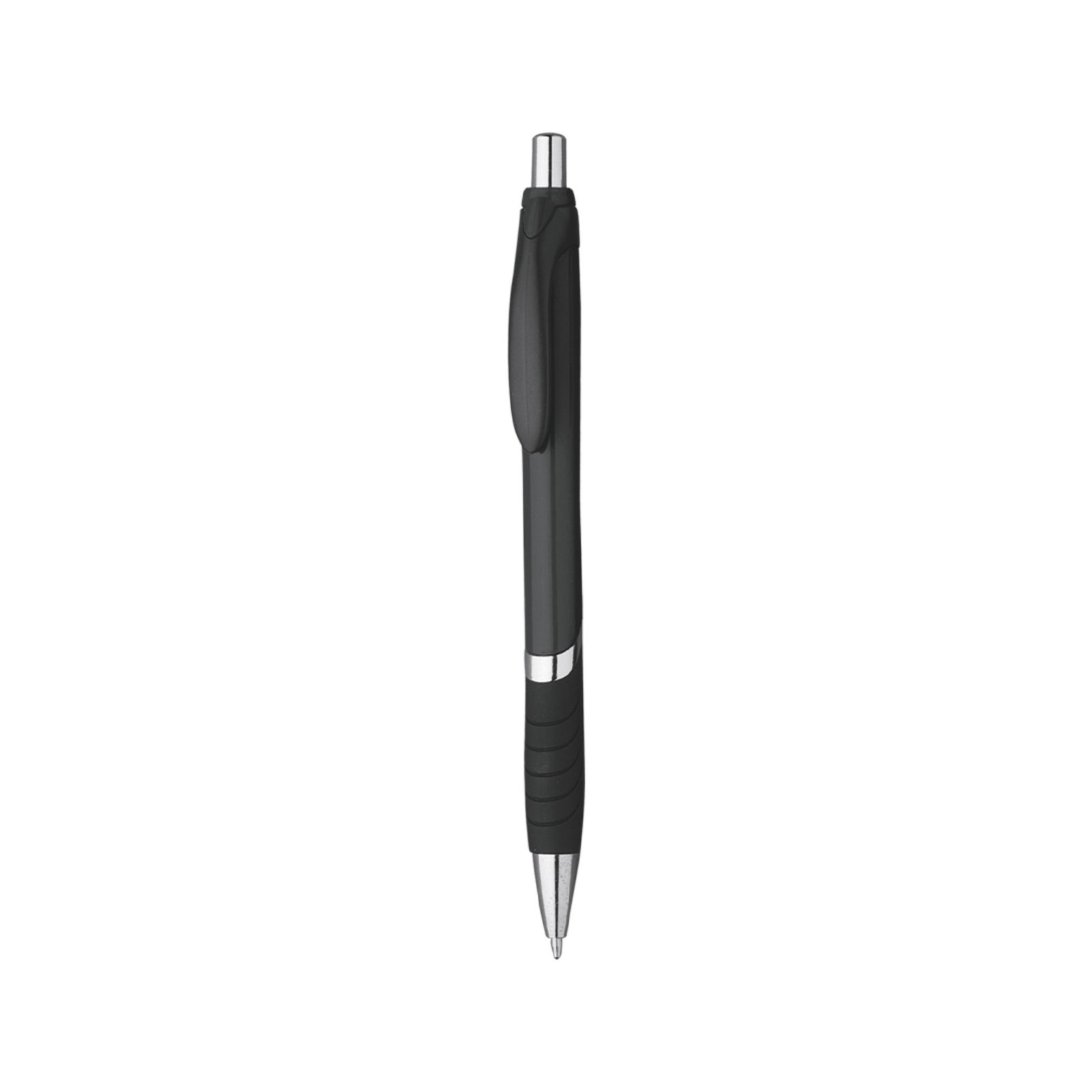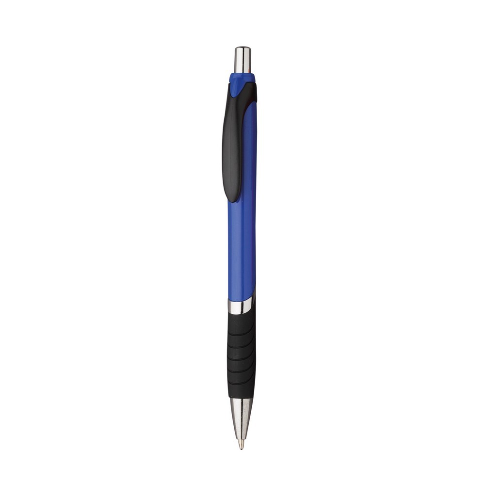 Penna sfera a scatto in plastica con clip in plastica. Fusto colorato particolari neri. Refill nero. Colori: vedi catalogo/sito. Imballo: 1000xcolore