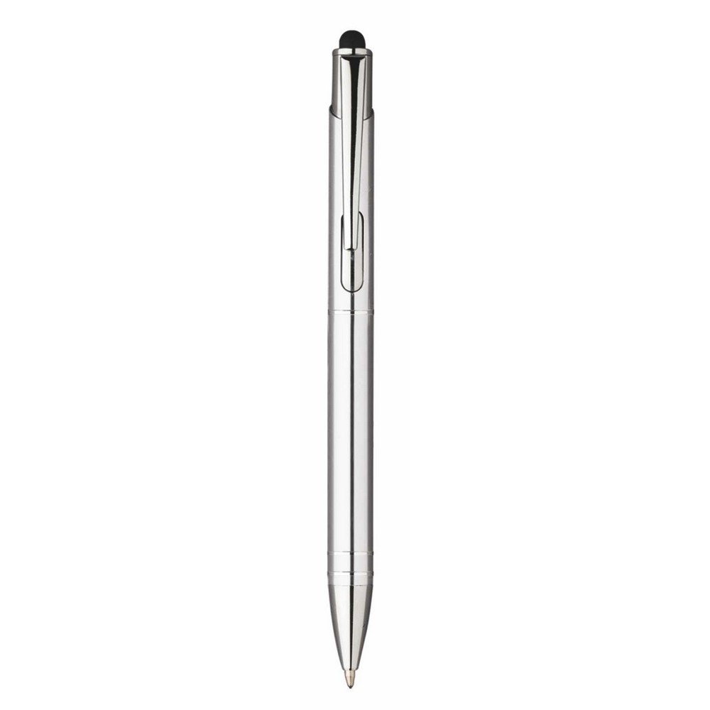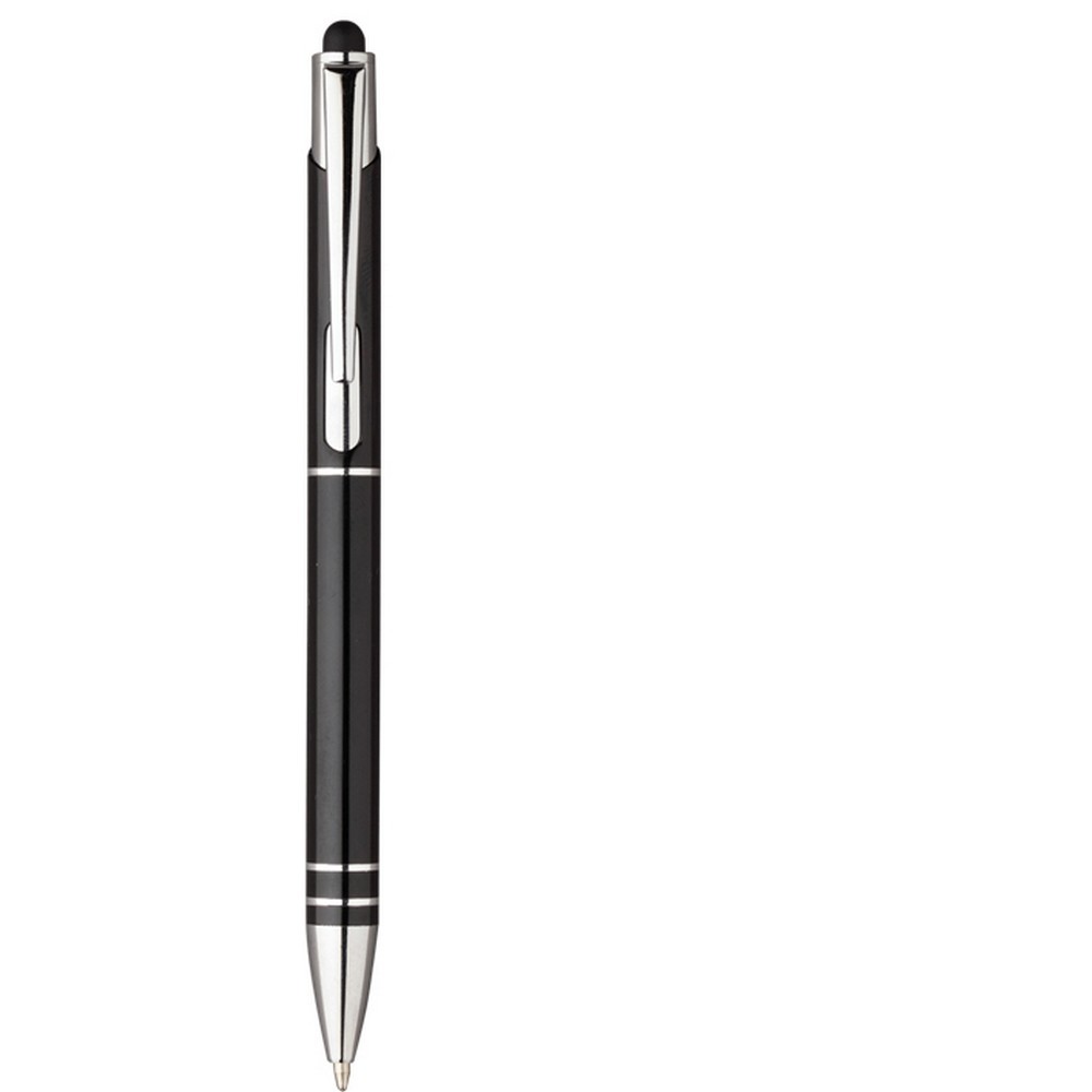 Touch pen a scatto in alluminio con clip in metallo. Refill nero. Colori: vedi catalogo/sito. Imballo: 500 xcolore