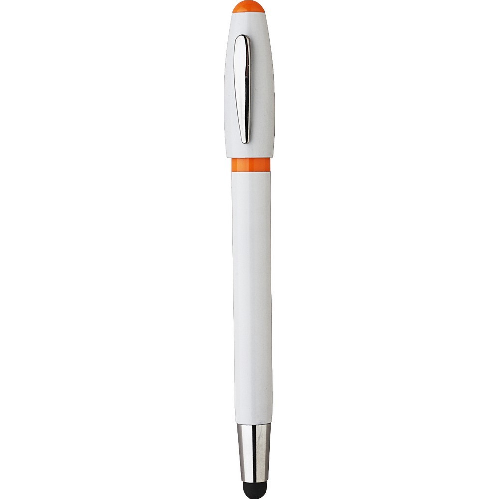 Touch pen a scatto in plastica con clip in metallo. Fusto bianco, particolari colorati. Refill nero. Colori: vedi catalogo/sito. Imballo: 1000xcolore