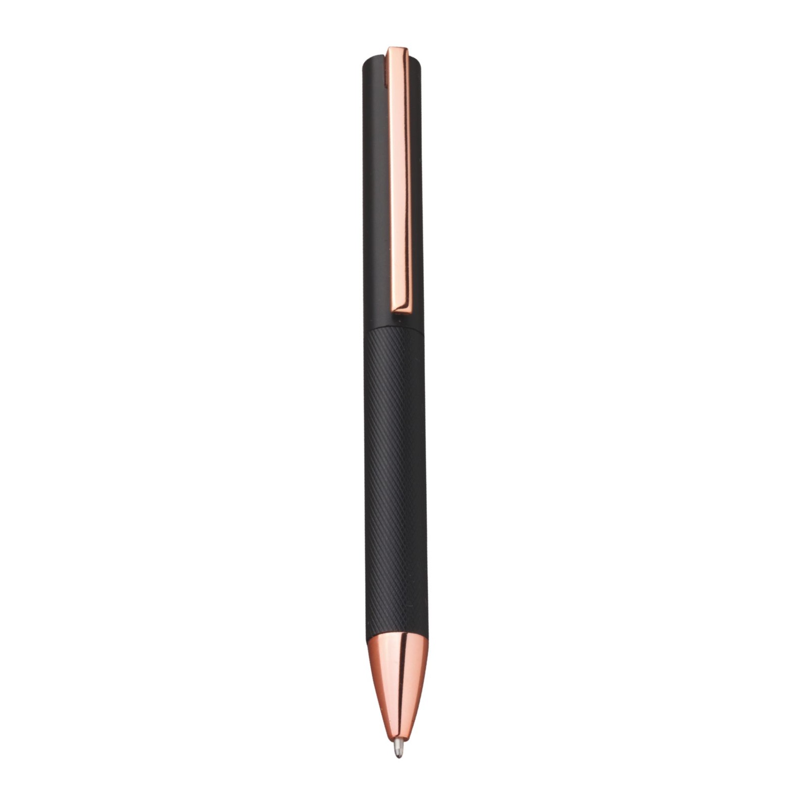 Penna in alluminio con meccanismo a rotazione. Confezione in astuccio. Refill nero. Dimensioni: astuccio 17,5 x 4,5 cm, penna 14cm. Imballo: 50pz.