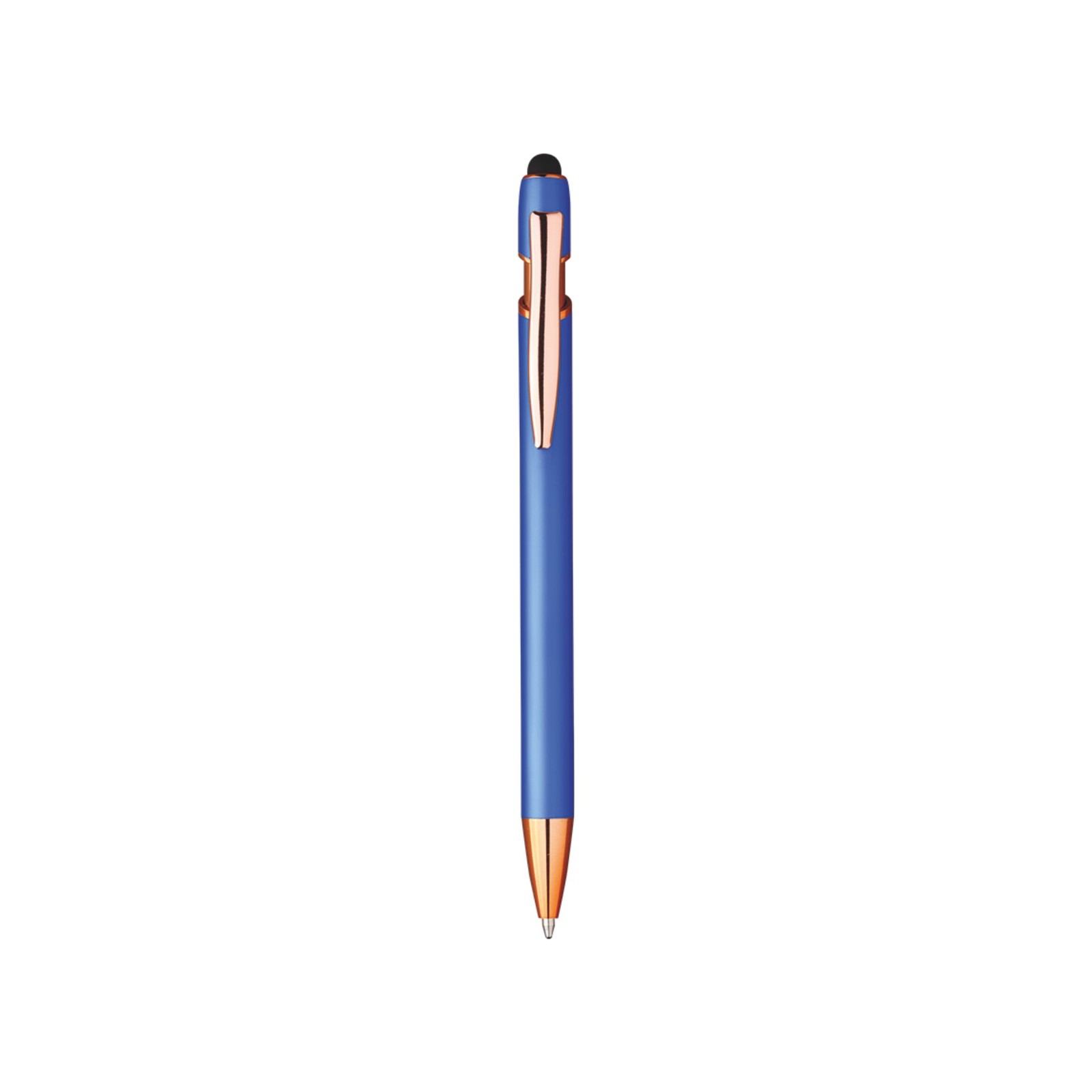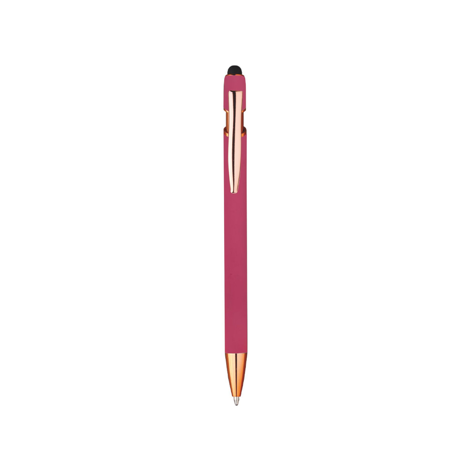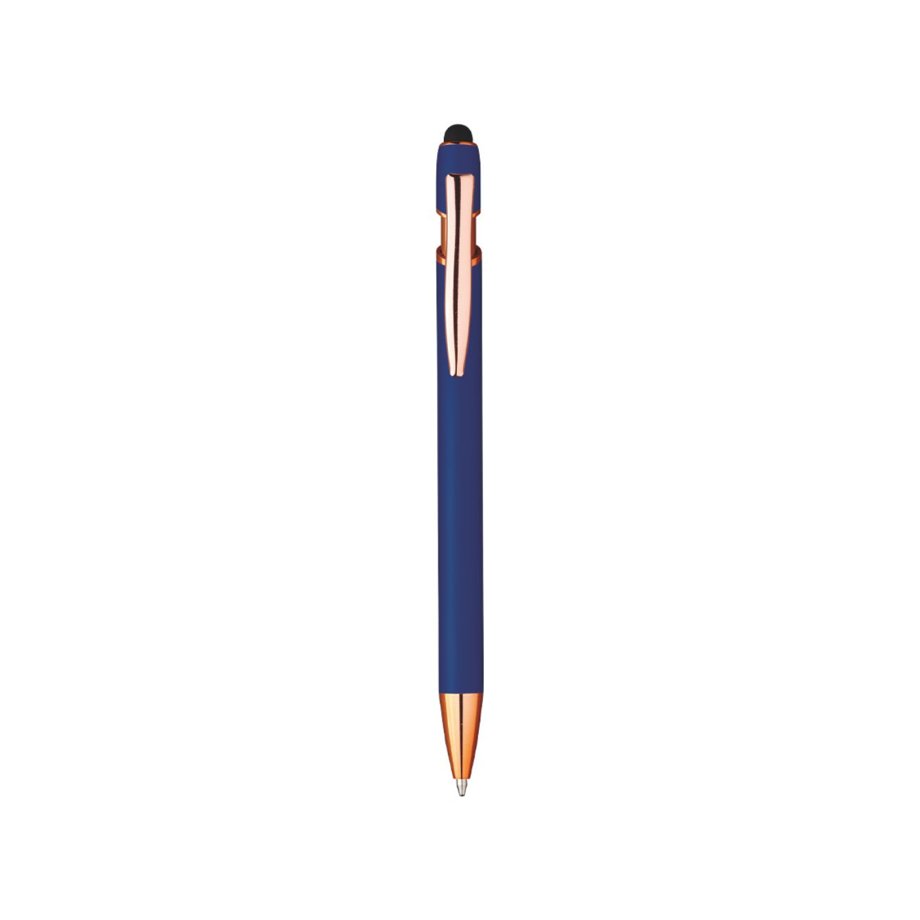 Penna in alluminio con finitura rubber con clip in alluminio. Con incisione laser sul fusto, il logo si mostrerà nel colore oro. Refill nero. Dimensioni: 14,5cm. Imballo: 500pz.