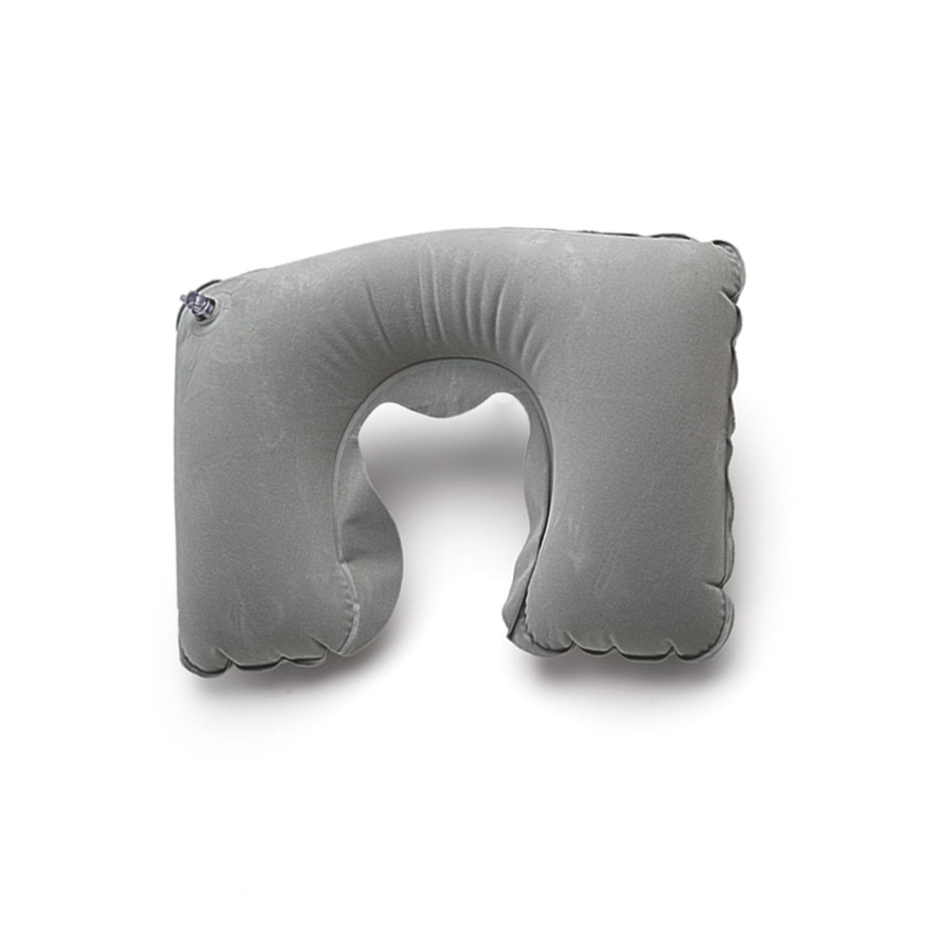 Poggiatesta gonfiabile da viaggio. Materiale: vellutino. Colori: grigio, nero. Confezione in poly-bag. Dimensioni cm.36x26,5 Imballo: 200xcolore