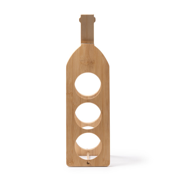 Portabottiglie in legno con una capacità di 3 bottiglie. Dimensioni: 13x46,5x2.