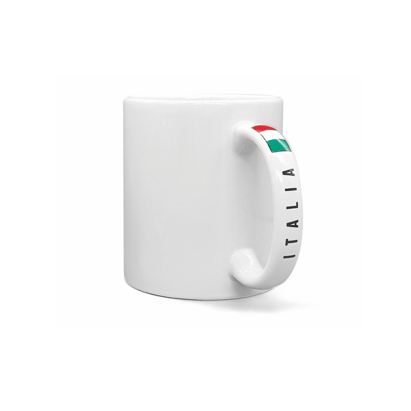 Tazza in ceramica con bandiera italiana su manico. In astuccio. Area di stampa: cm 9x18. Dimensioni: cm ø8H9,8,11o. Unisce estetica curata e funzionalità essenziale.