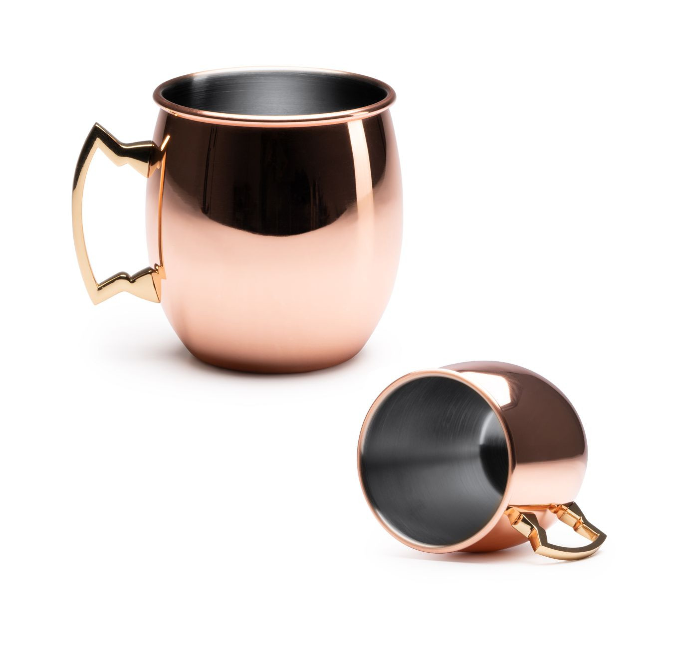 Tazza in acciaio inossidabile da 500ml con rivestimento esterno in rame che contribuisce a mantenere più a lungo la temperatura delle bevande. Confezione in scatola di design ecologico. Dimensioni: cm 10x9Ø