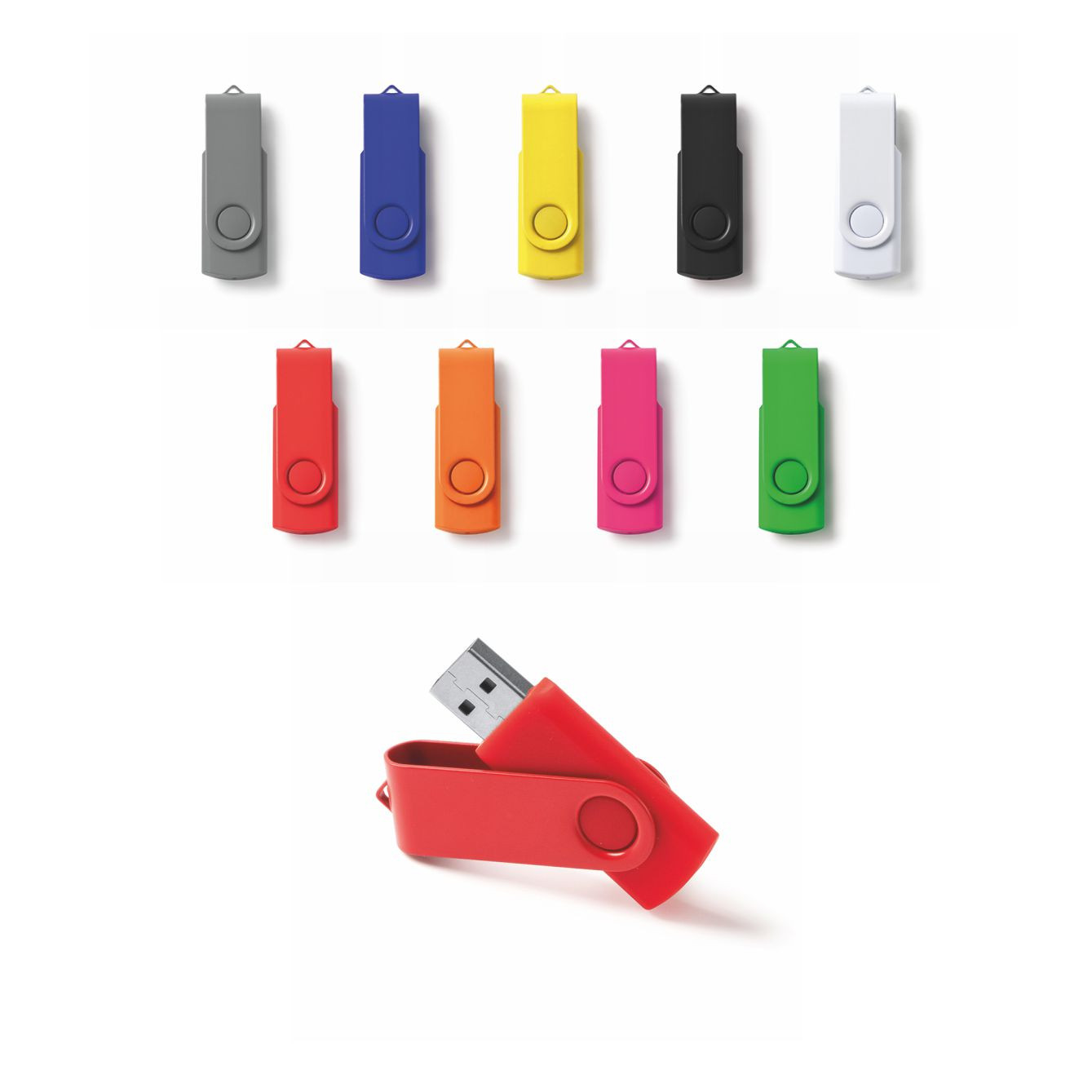 Chiavetta USB 16gb con struttura principale in ABS e clip girevole abbinata. Confezione in scatola con finestrella. Dimensioni: cm 5,7x0,9x1,9 - - N.B. Prezzi comprensivi di tassa SIAE