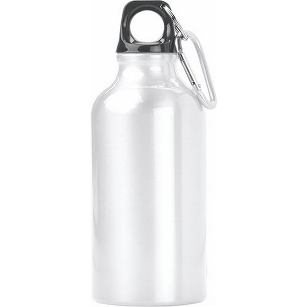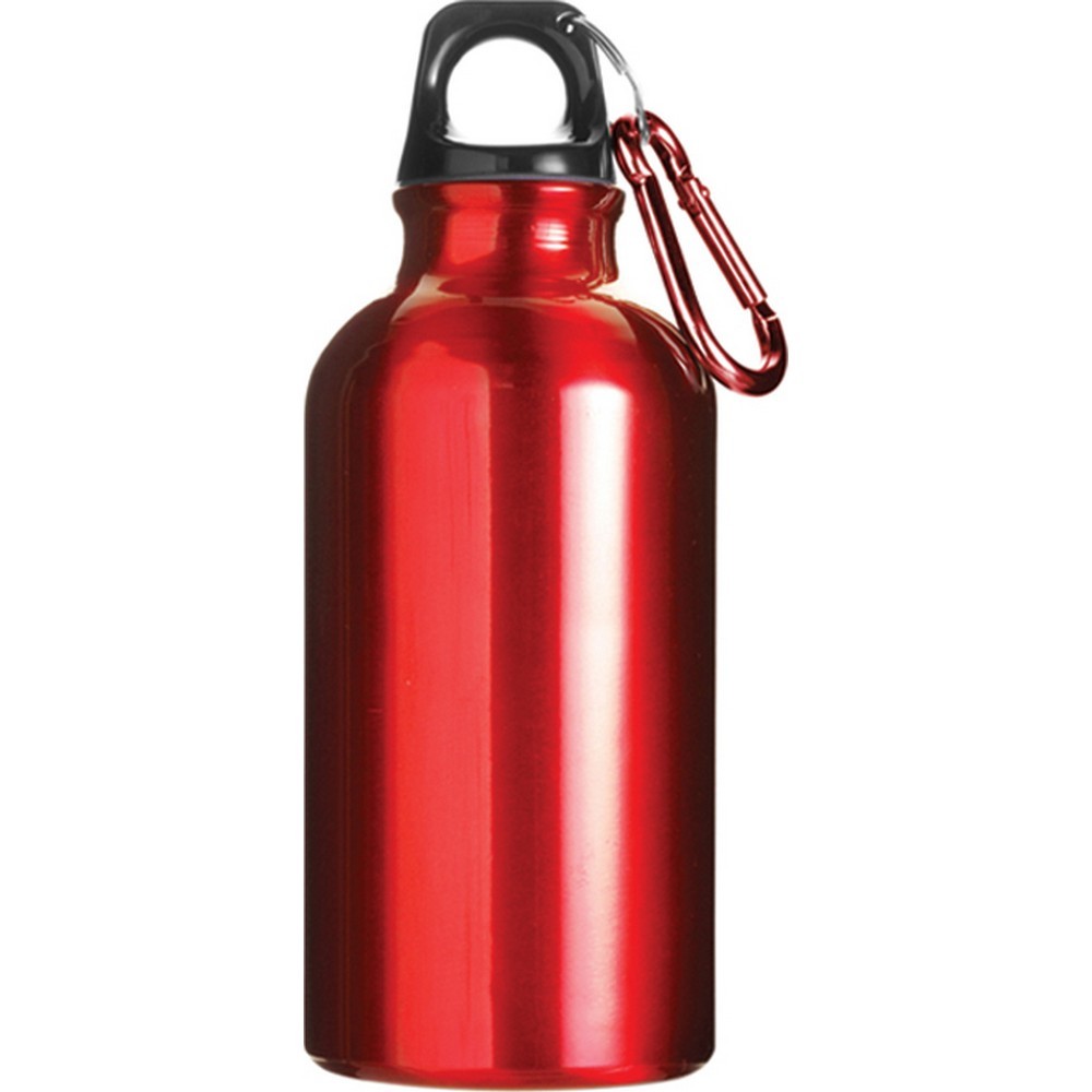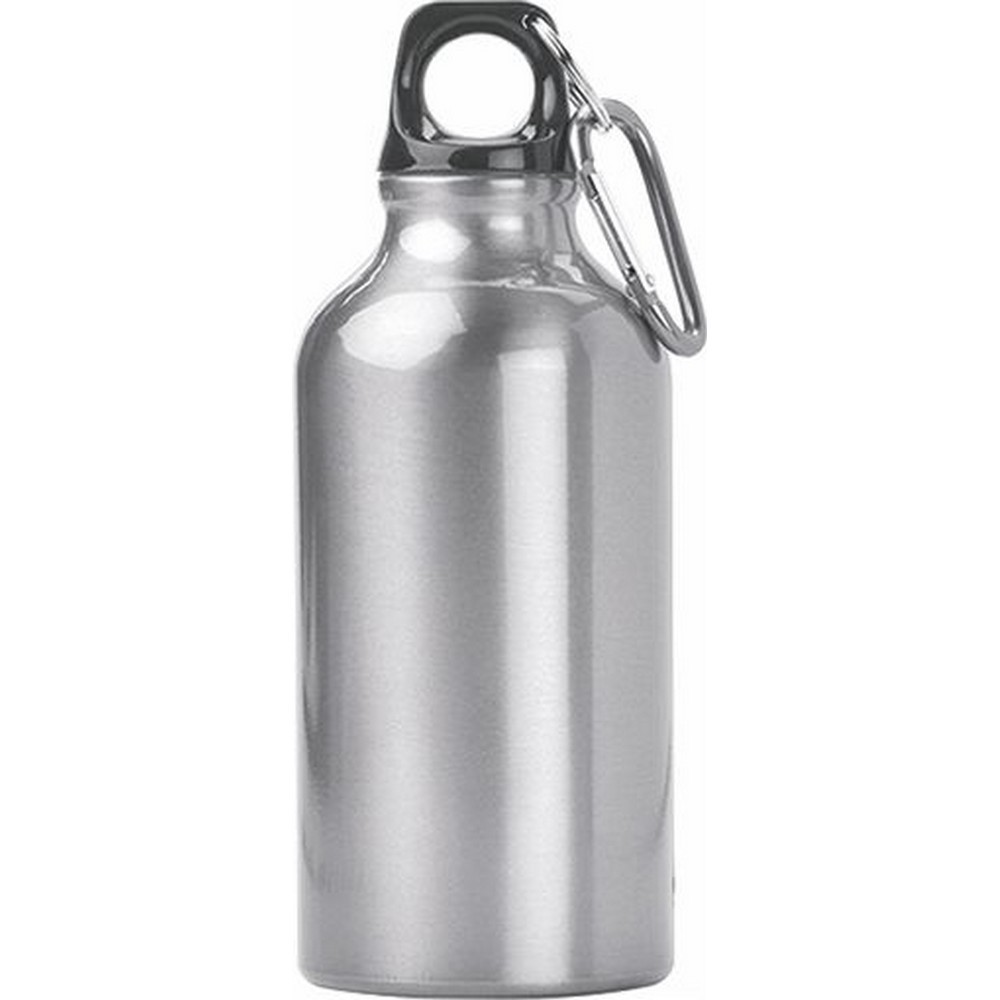 Borraccia in alluminio. Resistente all’acqua. Completa di moschettone. Capacità 400ml. Colori: vedi catalogo/sito. Confezione in Astuccio. Dimensioni Ø cm 7 h 12 Imballo: 60xcolore