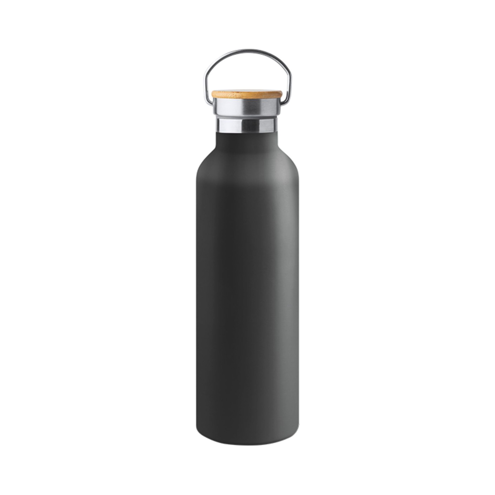 Borraccia da 600ml in acciaio Inox 304 con doppia parete, finitura opaca e tappo in bamboo. Confezione in astuccio. Dimensioni: cm 7,3 H 24,5. Imballo: 25pz.