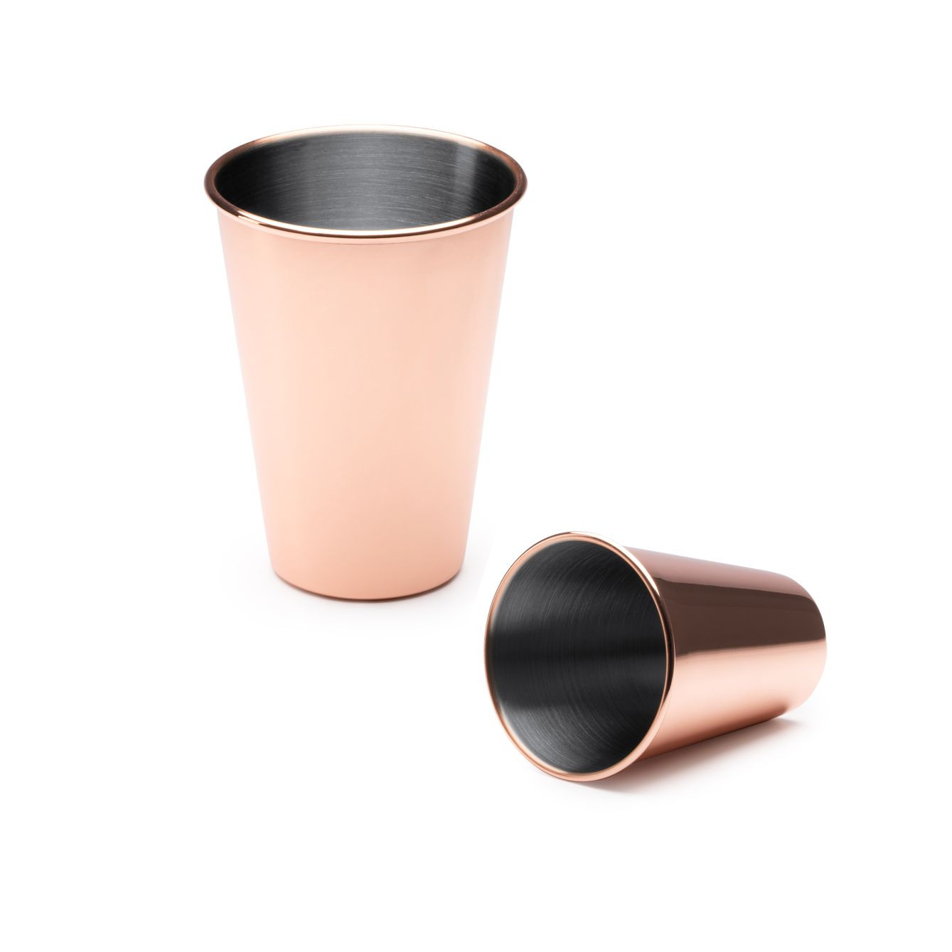 Bicchiere/tazza in acciaio inossidabile da 500ml con rivestimento esterno in rame che contribuisce a mantenere più a lungo la temperatura delle bevande. Confezione in scatola di design ecologico. Dimensioni: cm 12,5x9,5Ø