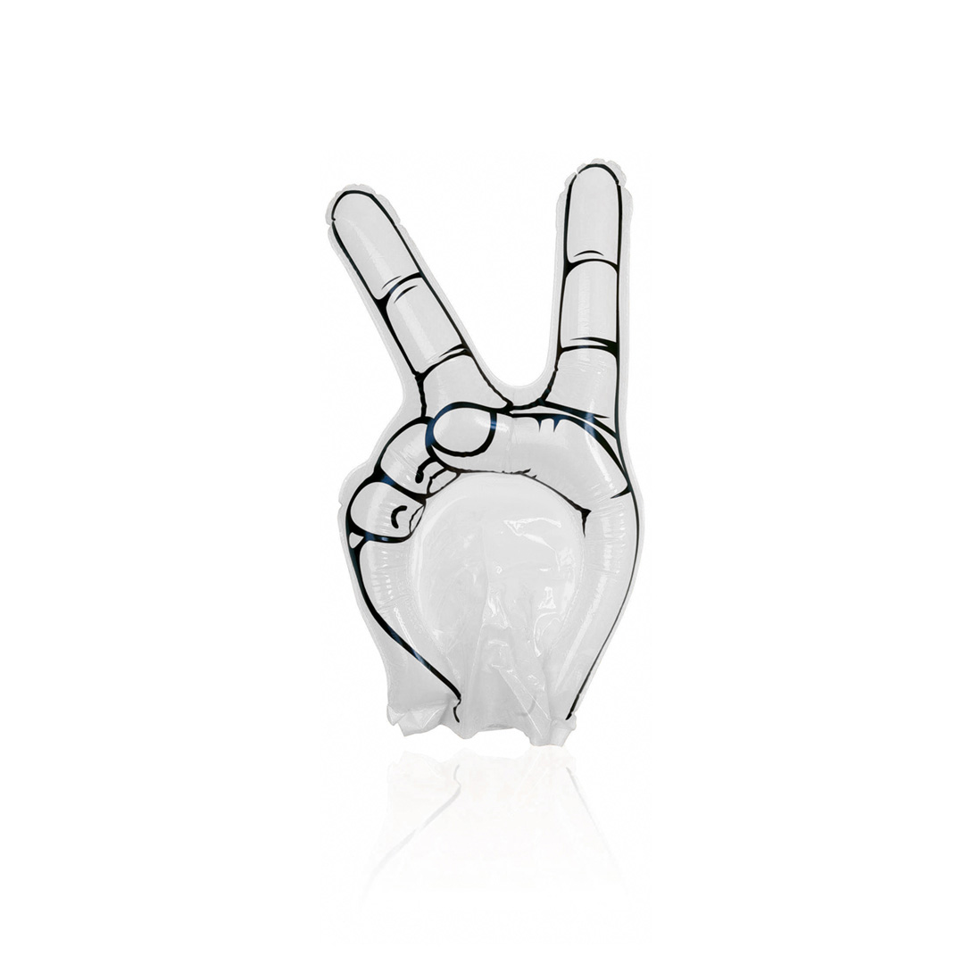 Divertente mano di animazione con il segno della vittoria realizzata in resistente LDPE e dai colori vivaci. Riutilizzabile e con valvola di gonfiaggio inclusa.