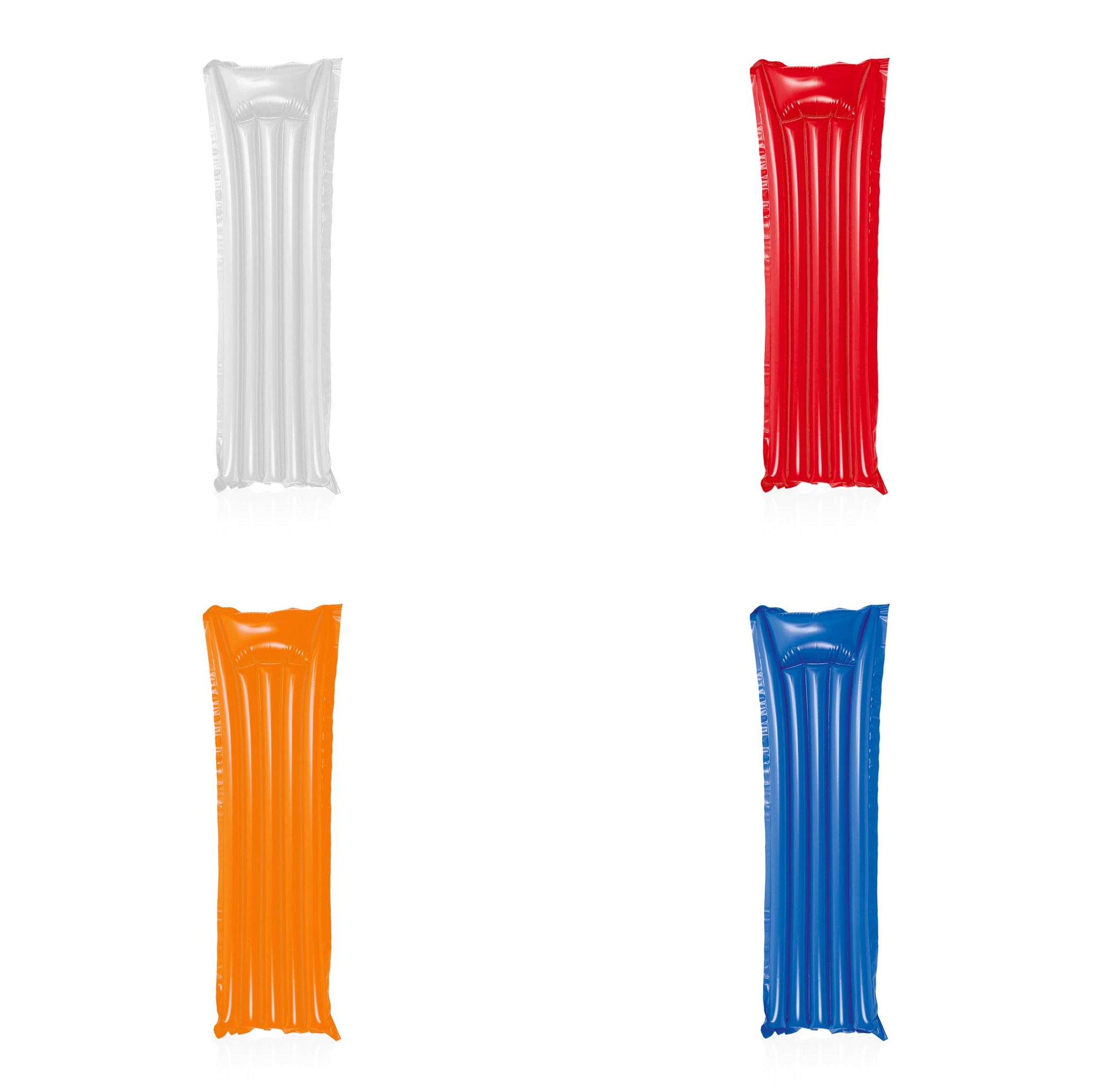 Materasso gonfiabile da 180 cm in PVC resistente e dai colori vivaci. Presentato con una speciale piegatura per facilitarne la stampa.
