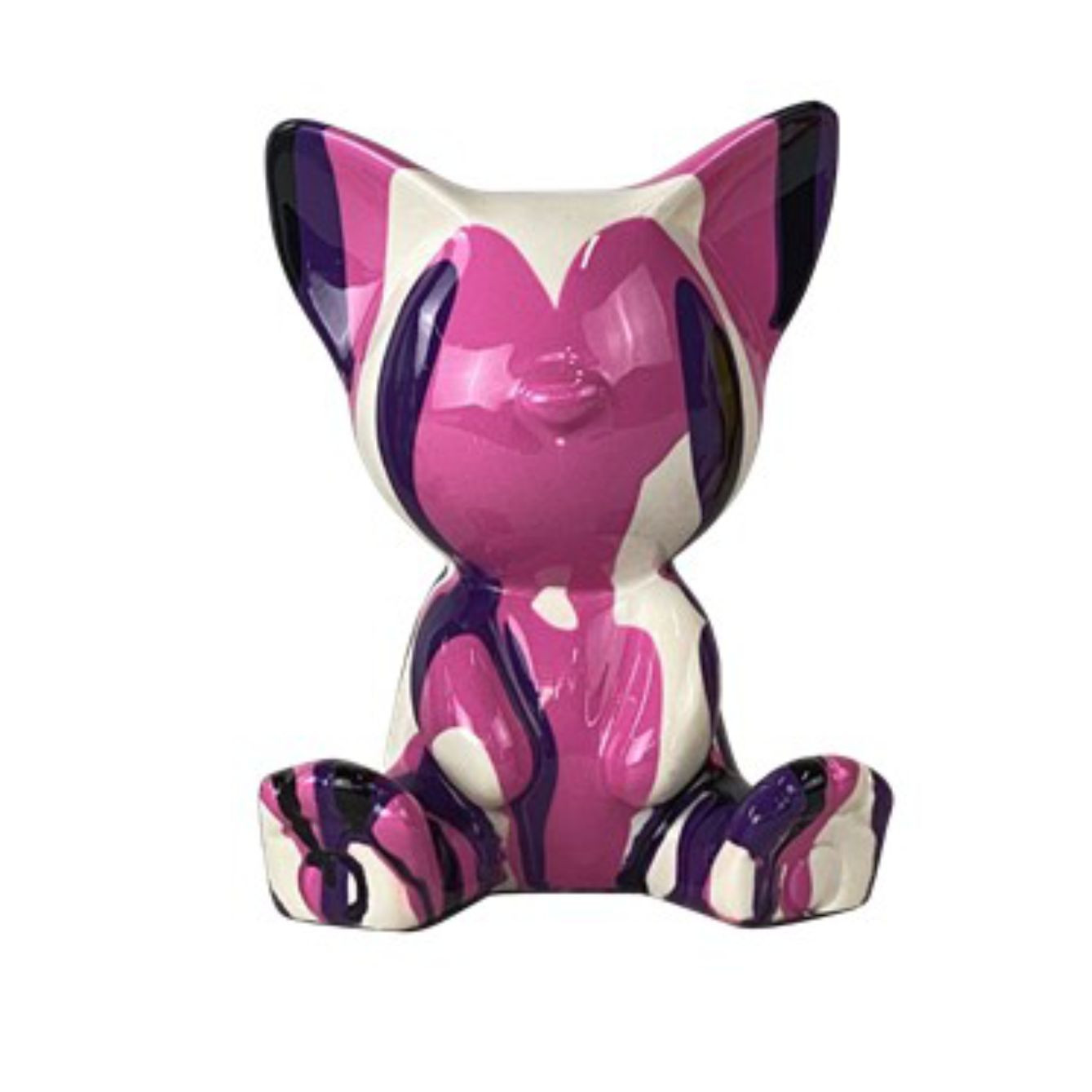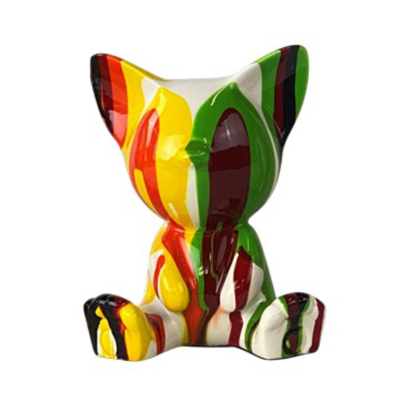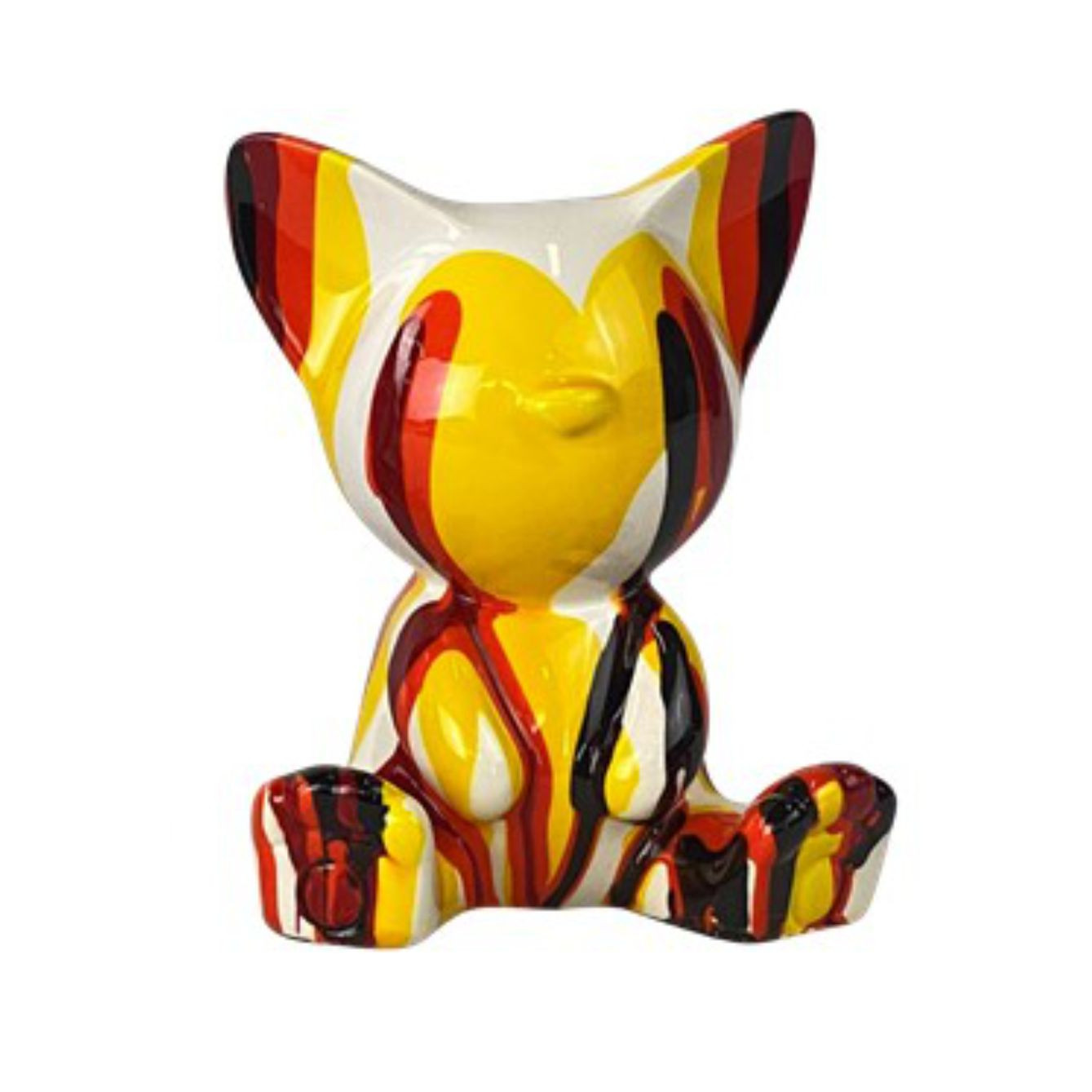Oggetti di design in poliresina a forma di gatti con fantasia multicolor. Dimensioni: cm H.11xL.10
