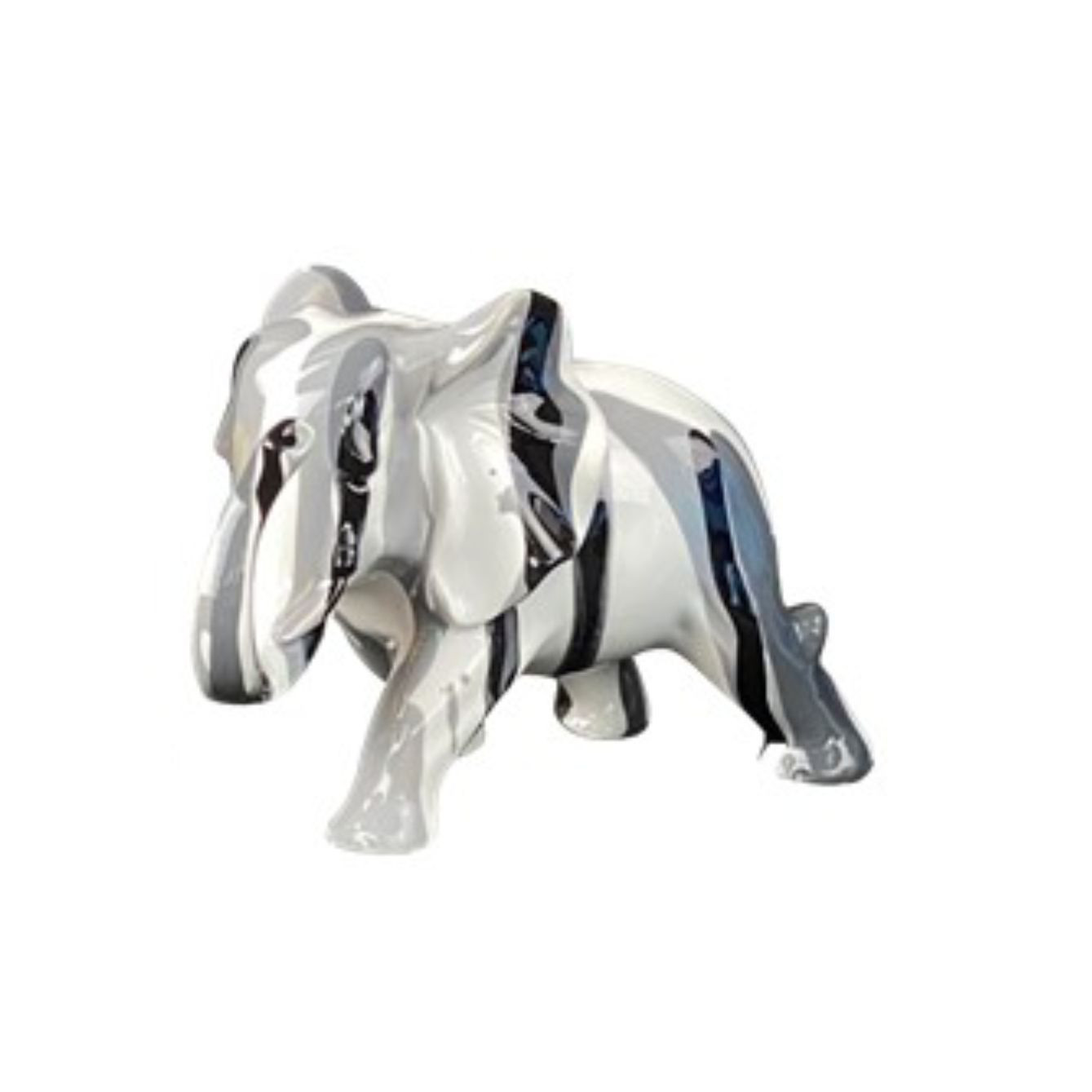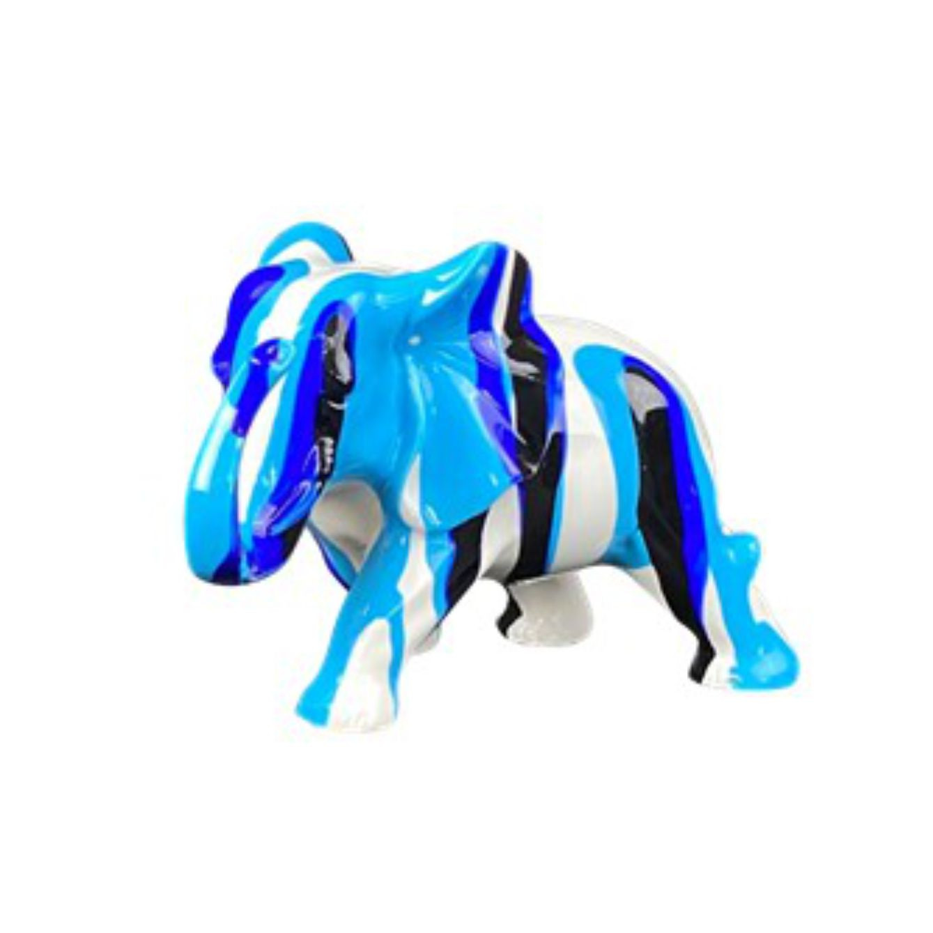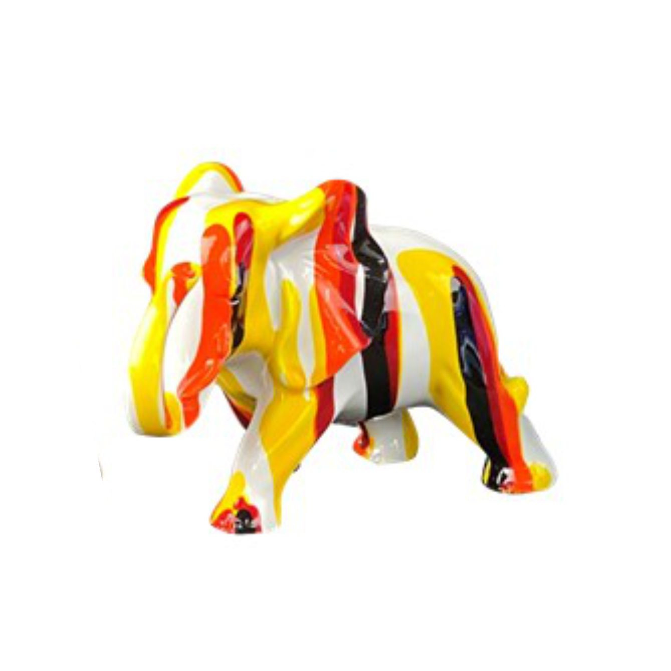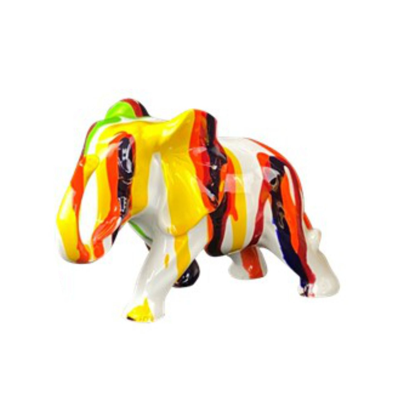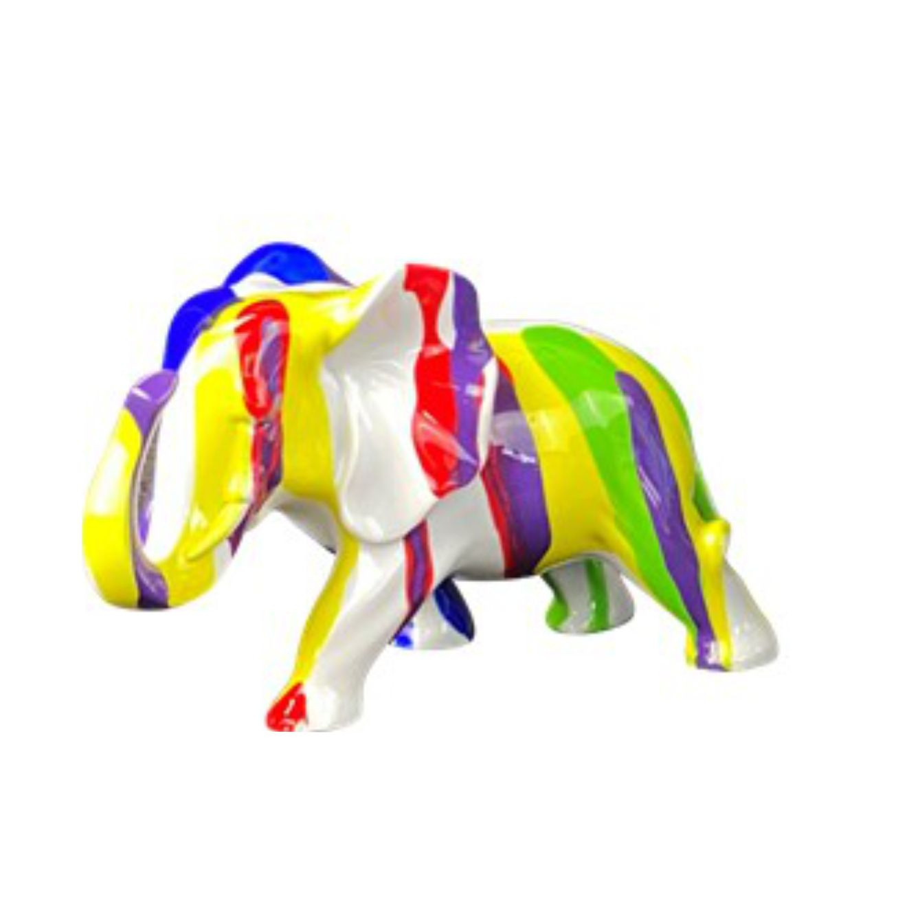 Oggetti di design in poliresina a forma di elefanti con fantasia multicolor. Dimensioni: cm L.10xH.8