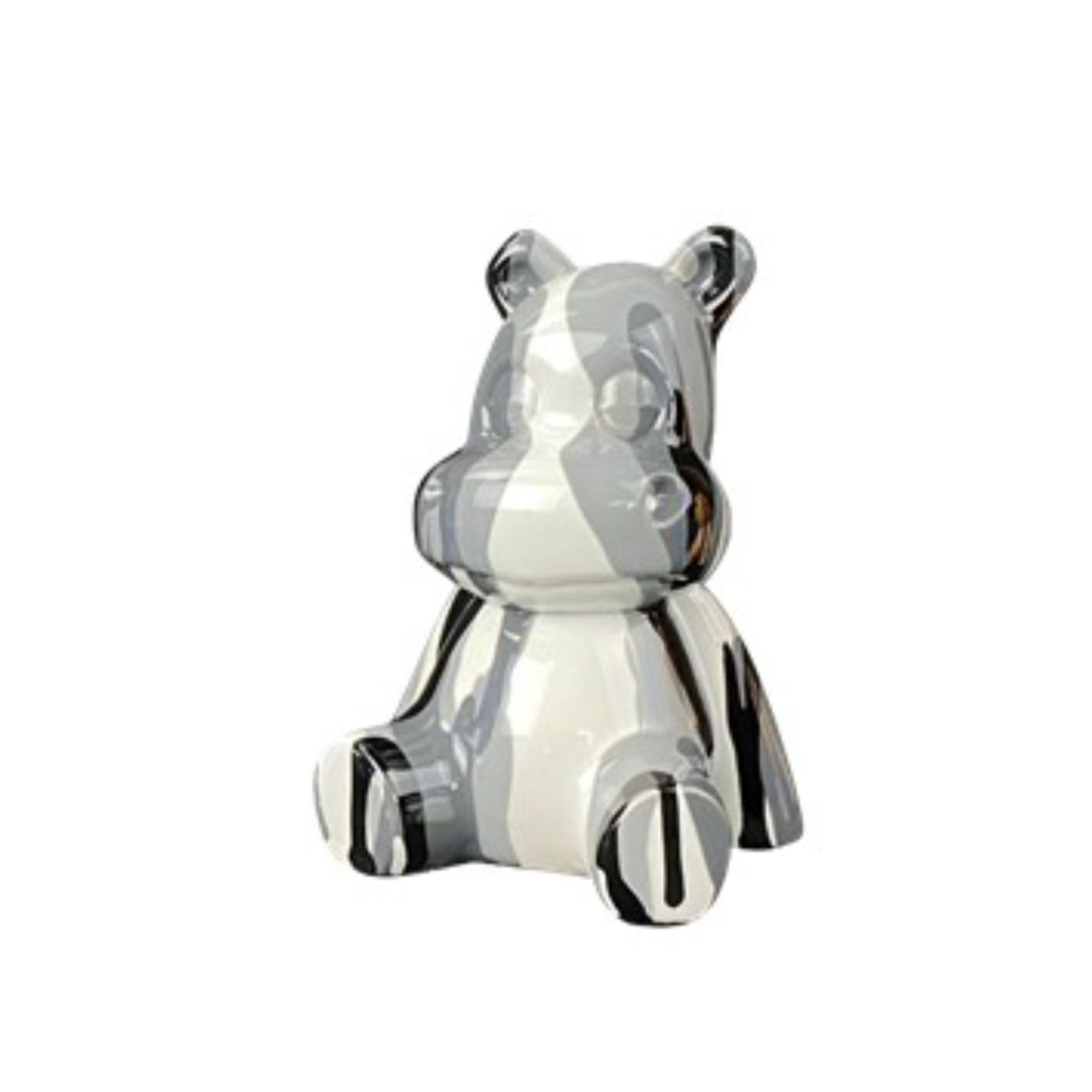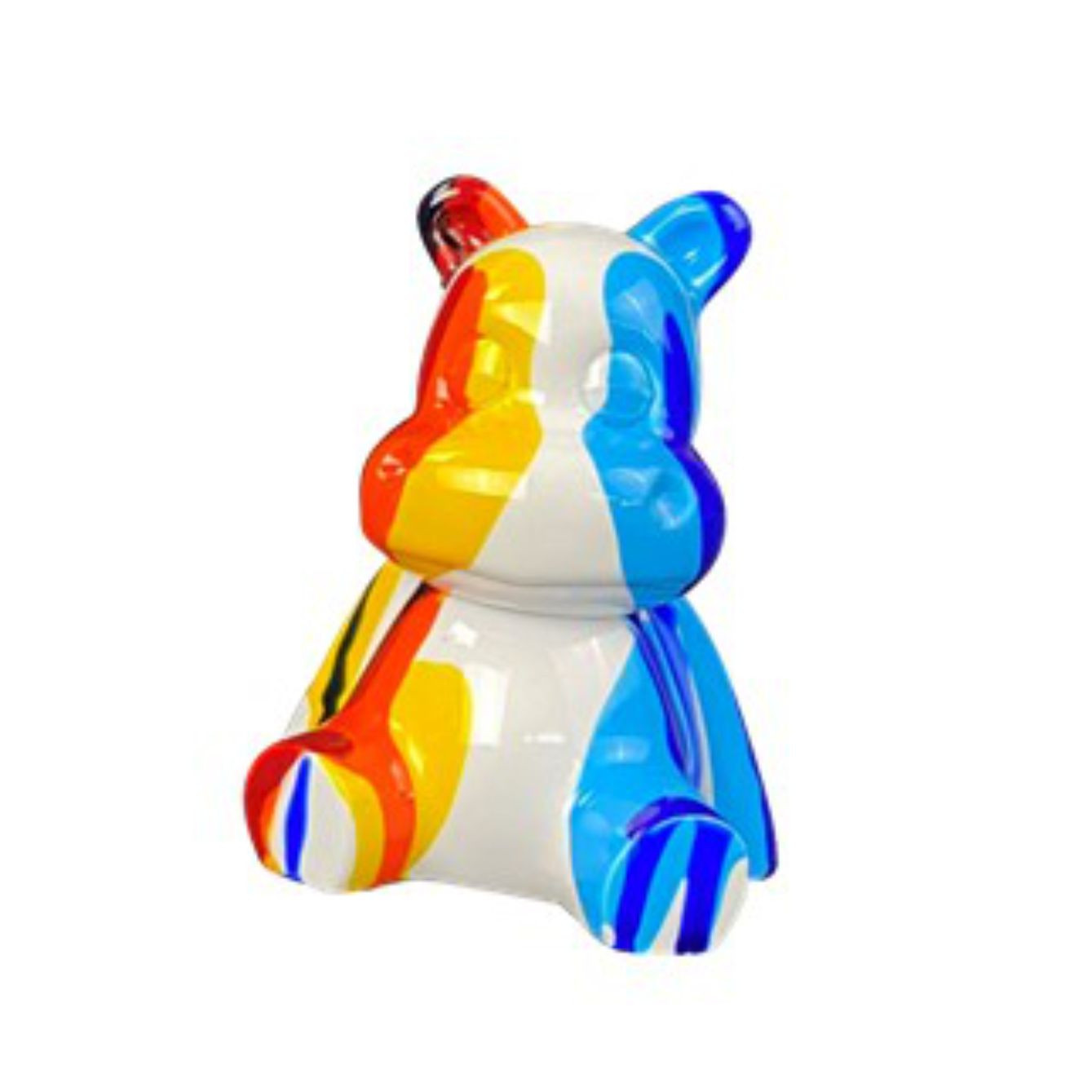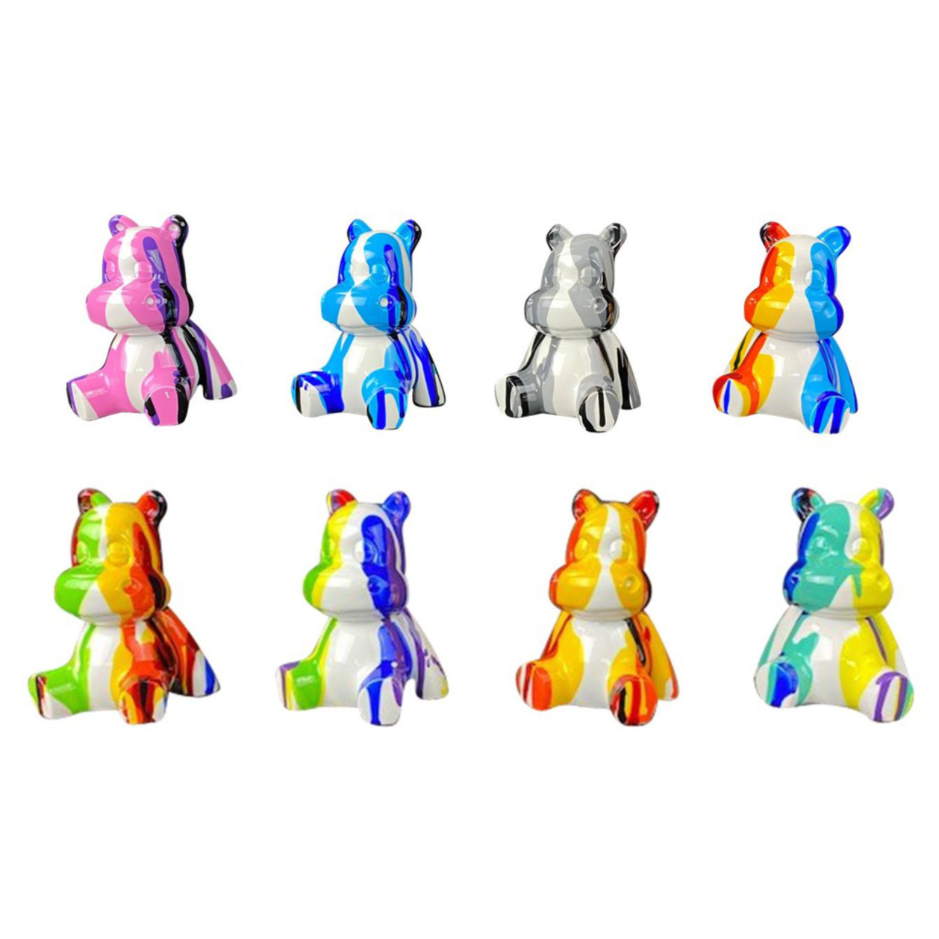 Oggetti di design in poliresina a forma di ippopotami con fantasia multicolor. Dimensioni: cm H.10xL.8